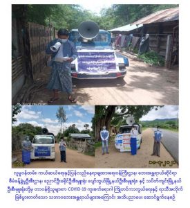 လူမှု၀န်ထမ်း၊ကယ်ဆယ်ရေးနှင့်ပြန်လည်နေရာချထားရေး၀န်ကြီးဌာန၊ ဘေးအန္တရာယ်ဆိုင်ရာ စီမံခန့်ခွဲမှုဦးစီးဌာန၊ မန္တလေးတိုင်းဒေသကြီးဦးစီးမှူးရုံး၊ ညောင်ဦးခရိုင်ဦးစီးမှူးရုံး၊ မိတ္ထီလာခရိုင်ဦးစီးမှူးရုံး၊ ရမည်းသင်းခရိုင်ဦးစီးမှူးရုံး၊ သပိတ်ကျင်းမြို့နယ်ဦးစီးမှူးရုံးနှင့် ပျော်ဘွယ်မြို့နယ်ဦးစီးမှူးရုံးတို့မှ တာ၀န်ရှိသူများသည် မန္တလေးတိုင်းဒေသကြီးအတွင်းရှိ ညောင်ဦးမြို့နယ်၊ မိတ္ထီလာမြို့နယ်၊ ရမည်းသင်းမြို့နယ်၊ သပိတ်ကျင်းမြို့နယ်၊ မတ္တရာမြို့နယ်နှင့် ပျော်ဘွယ်မြို့နယ်များရှိ ရပ်ကွက်၊ ကျေးရွာအုပ်စုနှင့် ကျေးရွာများသို့ (၁၇-၇-၂၀၂၁) ရက်နေ့နှင့် (၁၈-၇-၂၀၂၁) ရက်နေ့တွင် COVID-19 ကူးစက်ရောဂါ ကြိုတင်ကာကွယ်ရေးနှင့် ရာသီအလိုက်ဖြစ်ပွားတတ်သော သဘာဝဘေးအန္တရာယ်များအကြောင်း အသိပညာပေးခြင်း ဆောင်ရွက်ခဲ့ပါကြောင်း သတင်းရရှိပါသည်။