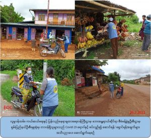 လှုမှုဝန်ထမ်း၊ ကယ်ဆယ်ရေးနှင့် ပြန်လည်နေရာချထားရေးဝန်ကြီးဌာန၊ ဘေးအန္တရာယ်ဆိုင်ရာ စီမံခန့်ခွဲမှုဦးစီးဌာန၊ ရှမ်းပြည်နယ်ဦးစီးမှူးရုံးမှ တာဝန်ရှိသူများသည် (၂၆-၇-၂၀၂၁)ရက်နေ့တွင် ကလောမြို့နယ်၊ အင်းနီကျေးရွာ၊ စံကားအင်းကျေးရွာနှင့် တောင်ပတ်ကျေးရွာတို့်တွင် Covid – 19ရောဂါတတိယလှိုင်း ကူးစက်ပျံ့နှံ့မှု ပိုမိုမဖြစ်ပွားေစရန်အတွက် ဆောင်ရန်/ရှောင်ရန်အချက်များကို အသံချဲ့စက်ဖြင့် နှိူးဆော်ခြင်း၊ Covid – 19ရောဂါ အသိပညာပေးလက်ကမ်းစာစောင်နှင့် တစ်ခါသုံး Mask ဝေငှခြင်း အစီအစဉ်တို့ကို ဆောင်ရွက်ခဲ့ပါကြောင်း သတင်းရရှိပါသည်။