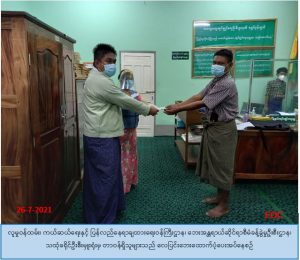 လူမှုဝန်ထမ်း၊ ကယ်ဆယ်ရေးနှင့် ပြန်လည်နေရာချထားရေးဝန်ကြီးဌာန၊ ဘေးအန္တရာယ်ဆိုင်ရာ စီမံခန့်ခွဲမှုဦးစီးဌာန၊ သထုံခရိုင်ဦးစီးမှူးရုံးမှ တာဝန်ရှိသူများသည် (၂၄-၇-၂၀၂၁)ရက်နေ့(၀၆:၃၀)နာရီ အချိန်ခန့်တွင်မွန်ပြည်နယ် သထုံခရိုင်၊ သထုံ မြို့နယ် ဒေးဗရိမ်းကျေးရွာအုပ်စုတွင် မိုးရွာသွန်းပြီး လေပြင်းတိုက်ခတ်မှုကြောင့်တစိတ်တစ်ပိုင်းပျက်စီးခဲ့သည့် လူနေအိမ်(၂)လုံးအတွက် အိမ်ဆောက် ပစ္စည်းဖိုးငွေ(၇၂၀၀ဝ/-)ကျပ် နှင့်လူဦးရေ စုစုပေါင်း(၉)ဦးတို့အတွက် (၇)ရက်စာဆန် ရိက္ခာဖိုးထောက်ပံ့ငွေ (၁၈,၉၀ဝ/-) ကျပ်၊ စုစုပေါင်းထောက် ပံ့ငွေ (၉၀၉၀ဝ/-)ကျပ်အား (၂၆-၇-၂၀၂၁)ရက်နေ့ (၁၆:၀၀) နာရီအချိန်ခန့်တွင်မြို့နယ်စီမံအုပ်ချုပ်ရေးအဖွဲ့ရုံး၌ ဘေးသင့်ပြည်သူများထံ လက်ဝယ်အရောက် သွားရောက် ထောက်ပံ့ပေးအပ်ခဲ့ပါကြောင်း သတင်းရရှိပါသည်။