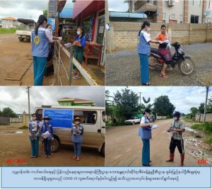 လှုမှုဝန်ထမ်း၊ ကယ်ဆယ်ရေးနှင့် ပြန်လည်နေရာချထားရေးဝန်ကြီးဌာန၊ ဘေးအန္တရာယ်ဆိုင်ရာ စီမံခန့်ခွဲမှုဦးစီးဌာန၊ ရှမ်းပြည်နယ်ဦးစီးမှူးရုံးမှ တာဝန်ရှိသူများသည် (၂၇-၇-၂၀၂၁)ရက်နေ့တွင် တောင်ကြီးမြို့နယ်၊ ရေနွေးကျေးရွာ၊ တောင်ခြေကျေးရွာနှင့် ဖက်နံကျေးရွာတို့တွင် Covid – 19 ရောဂါ တတိယလှိုင်း ကူးစက်ပျံ့နှံ့မှု ပိုမိုမဖြစ်ပွားေစရန်အတွက် ဆောင်ရန်/ရှောင်ရန် အချက်များကို အသံချဲ့စက်ဖြင့် နှိူးဆော်ခြင်း၊ Covid – 19 ရောဂါ အသိပညာပေးလက်ကမ်းစာစောင်နှင့် တစ်ခါသုံး Mask ဝေငှခြင်း အစီအစဉ်တို့ကို ဆောင်ရွက်ခဲ့ပါကြောင်း သတင်းရရှိပါသည်။