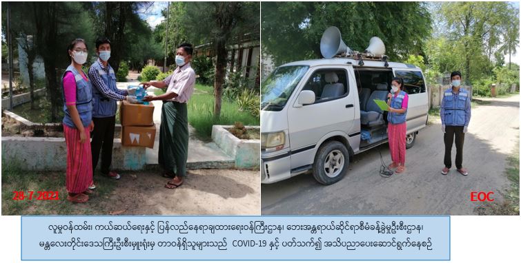 လူမှု၀န်ထမ်း၊ကယ်ဆယ်ရေးနှင့်ပြန်လည်နေရာချထားရေး၀န်ကြီးဌာန၊ ဘေးအန္တရာယ်ဆိုင်ရာ စီမံခန့်ခွဲမှုဦးစီးဌာန၊ မန္တလေးတိုင်းဒေသကြီးအတွင်းရှိ မန္တလေးတိုင်းဒေသကြီဦးစီးမှူးရုံးမှ တာ၀န်ရှိသူများသည် ငါန်းဇွန်မြို့နယ်ရှိ အမှတ်(၁)၊ အမှတ်(၂)၊ အမှတ်(၃)၊ အမှတ်(၄)၊ တမာပင်ကျေးရွာအုပ်စုတွင် တမာပင်ကြီးကျေးရွာ၊ ညောင်ချင်းကျေးရွာ၊ လက်ပံပင်ကျေးရွာ၊ စီထိန်ကျေးရွ, ပေါင်း ရပ်ကွက်(၄)ရပ်ကွက်၊ ကျေးရွာအုပ်စု(၁)စု၊ ကျေးရွာ(၄)ရွာသို့ (၂၈-၇-၂၀၂၁) ရက်နေ့တွင် COVID-19 အသိပညာပေးခြင်းနှင့် ရာသီကာအလိုက်ဖြစ်ပွားတတ်သော သဘာဝဘေးအန္တရာယ်များအကြောင်း အသိပညာပေးခြင်း ဆောင်ရွက်ခဲ့ပါကြောင်း သတင်းရရှိပါသည်။