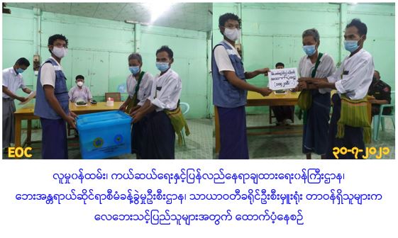 လူမှုဝန်ထမ်း၊ ကယ်ဆယ်ရေးနှင့်ပြန်လည်နေရာချထားရေးဝန်ကြီးဌာန၊ ဘေးအန္တရာယ်ဆိုင်ရာစီမံခန့်ခွဲမှုဦးစီးဌာန၊ သာယာဝတီခရိုင်ဦးစီးမှူးရုံးမှ တာဝန်ရှိသူများသည် (၂၉-၇-၂၀၂၁)ရက်နေ့၌ သာယာတီမြို့နယ်၊ အိုင်ကဒုံကျေးရွာအုပ်စု၊ ကညင်တပင်ကျေးရွာတွင် ဖြစ်ပွားသောလေဘေးကြောင့် ပြိုလဲနေအိမ်(၁) လုံး၊ လူဦးရေ(၂)ဦးတို့အတွက် ဆန်ရိက္ခာဖိုးနှင့် အိမ်ဆောက်ပစ္စည်းဖိုးထောက်ပံ့ငွေ စုစုပေါင်း(၁၀၄၂၀ဝိ/-)နှင့် ကယ်ဆယ်ရေးပစ္စည်း(၁၆)မျိုးပါ (၁)အိမ်ထောင်စုစာတို့အား(၃၀-၇-၂၀၂၁)ရက်နေ့တွင် ဘေးသင့်ပြည်သူများ လက်ဝယ်အရောက် ထောက်ပံ့ပေးအပ်ခဲ့ပါကြောင်း သတင်းရရှိပါသည်။