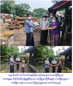လူမှုဝန်ထမ်း၊ ကယ်ဆယ်ရေးနှင့် ပြန်လည်နေရာချထားရေးဝန်ကြီးဌာန၊ ဘေးအန္တရာယ်ဆိုင်ရာစီမံခန့်ခွဲမှုဦးစီးဌာန၊ အင်္ဂပူမြို့နယ်ဦးစီးမှူးရုံးမှ တာဝန်ရှိသူများသည် အင်္ဂပူမြို့နယ်၊ လှည်းမှောက်အုပ်စု၊ ရေထွက်ခုံကျေးရွာတွင် (၂၇-၇-၂၀၂၁)ရက်နေ့၌ ဖြစ်ပွားခဲ့သော ကမ်းပြိုဘေးကြောင့် ကြိုတင်ရွှေ့ပြောင်းခဲ့ရသော လူနေအိမ်ခြေ(၂)လုံးအတွက် အိမ်ဆောက်ပစ္စည်းဖိုးကျပ်( ၂၀၀ဝဝဝိ/-)ကျပ် ၊ လူဦးရေ (၁၀)ဦးအတွက် ဆန်ရိက္ခာ(၇)ရက်စာဖိုး ထောက်ပံ့ ငွေကျပ်(၂၁၀၀ဝိ/-)ကျပ်၊ စုစုပေါင်းထောက်ပံ့မှုတန်ဖိုး (၂၂၁၀၀ဝိ/-)ကျပ်နှင့် ထူးကြီးမြို့၊ အမှတ်(၁)ရပ်ကွက်တွင် (၂၇-၇-၂၀၂၁)ရက်နေ့၌ ဖြစ်ပွားခဲ့သော လေဘေးကြောင့် တစ်စိတ်တစ်ပိုင်းပျက်စီးဆုံးရှုံးခဲ့သောလူနေအိမ်ခြေ(၂)လုံးအတွက် အိမ်ဆောက်ပစ္စည်းဖိုး (၁၇၀ဝဝဝိ/-)ကျပ် ၊ လူဦးရေ(၉)ဦးအတွက် ဆန်ရိက္ခာ(၇)ရက်စာဖိုး ထောက်ပံ့ငွေ ကျပ်(၁၈၉၀ဝိ/-)ကျပ်၊ စုစုပေါင်းထောက်ပံ့မှုတန်ဖိုးကျပ် (၁၈၈၉၀ဝိ/-) ကျပ်တို့အား(၁-၈-၂၀၂၁) ရက်နေ့ (၁၅:၀၀)နာရီအချိန်တွင် သက်ဆိုင်ရာတာဝန်ရှိသူများနှင့်အတူ ဘေးဖြစ်ပွားရာဒေသများသို့သွားရောက်၍ ဘေးသင့်ပြည်သူများလက်ဝယ်အရောက် ထောက်ပံ့ပေးအပ်ခဲ့ပါကြောင်း သတင်းရရှိပါသည်။