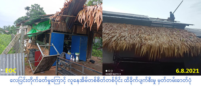 လူမှုဝန်ထမ်း၊ ကယ်ဆယ်ရေးနှင့် ပြန်လည်နေရာချထားရေးဝန်ကြီးဌာန၊ ဘေးအန္တရာယ်ဆိုင်ရာစီမံခန့်ခွဲမှုဦးစီးဌာန၊ သထုံခရိုင်ဦးစီးမှူးရုံးမှတာဝန်ရှိသူများသည် (၆-၈-၂၀၂၁)ရက်နေ့ (၀၃း၀၀) နာရီအချိန်ခန့်တွင် မွန်ပြည်နယ်၊ သထုံခရိုင်၊ သထုံမြို့နယ် ကျုံပါကျေးရွာအုပ်စု၊ နောင်ဘိုကျေးရွာ၌ လေပြင်းတိုက်ခတ်မှုကြောင့် တစ်စိတ်တစ်ပိုင်းပျက်စီးခဲ့သည့် လူနေအိမ်(၁)လုံးအတွက် အိမ်ဆောက်ပစ္စည်းဖိုးငွေထောက်ပံ့ငွေ(၆၀,၀၀၀/-)ကျပ်နှင့် ဘေးသင့်လူဦးရေစုစုပေါင်း(၆)ဦးတို့အတွက် (၇)ရက်စာဆန်ရိက္ခာဖိုးငွေထောက်ပံ့ငွေ(၁၂,၆၀၀/-)ကျပ်၊ စုစုပေါင်းထောက်ပံ့ငွေ (၇၂,၆၀၀/-)ကျပ်အား(၉-၈-၂၀၂၁)ရက်နေ့ (၁၂း၃၀)နာရီအချိန်ခန့်တွင် သထုံမြို့နယ်စီမံအုပ်ချုပ်ရေးအဖွဲ့နှင့်အတူ ဘေးသင့်ပြည်သူများထံသို့ သွားရောက်ထောက်ပံ့ပေးအပ်ခဲ့ပါကြောင်း သတင်းရရှိပါသည်။