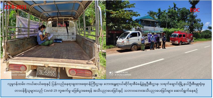 လူမှုဝန်ထမ်း၊ ကယ်ဆယ်ရေးနှင့် ပြန်လည်နေရာချထားရေးဝန်ကြီးဌာန၊ ဘေးအန္တရာယ်ဆိုင်ရာစီမံခန့်ခွဲမှု ဦးစီးဌာန၊ သရက်ချောင်းမြို့နယ်ဦးစီးမှူးရုံးမှ တာဝန်ရှိသူများသည် (၂၃-၈-၂၀၂၁)ရက်နေ့၌ သရက်ချောင်းမြို့နယ်၊ တီတွတ်ပြင်ကျေးရွာ၊ အိမ်ရှေ့ပြင်ရပ်ကွက်နှင့် ဆင်ဖြူပြင်ရပ်ကွက်တို့တွင် ကျန်းမာရေး ဝန်ကြီးဌာနမှ ထုတ်ပြန်ထားသော Covid-19 ရောဂါကူးစက်မှုမဖြစ်စေရန် အသိပညာပေးခြင်း၊ ရာသီအလိုက်ဖြစ်ပွားတတ်သော သဘာဝဘေးအန္တရာယ်များနှင့်ပတ်သက်သည့် ဆောင်ရန်/ရှောင်ရန် များအား အသိပညာပေးခြင်းကို မီးသတ်ဦးစီးဌာနနှင့်အတူ ပူးပေါင်းဆောင်ရွက်ခဲ့ပါကြောင်း သတင်းရရှိပါသည်။