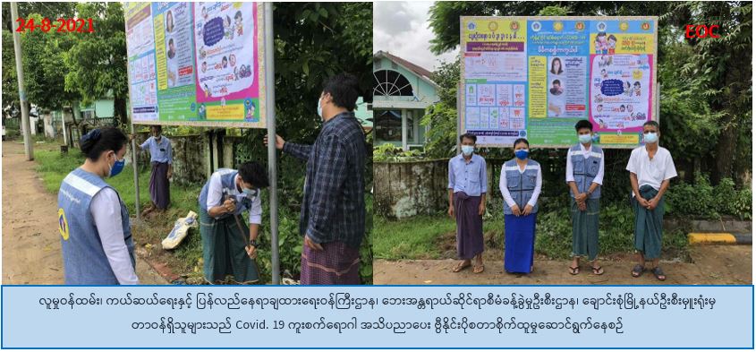 လူမှုဝန်ထမ်း၊ ကယ်ဆယ်ရေးနှင့် ပြန်လည်နေရာချထားရေးဝန်ကြီးဌာန၊ ဘေးအန္တရယ်ဆိုင်ရာစီမံခန့်ခွဲမှု ဦးစီးဌာန၊ မွန်ပြည်နယ်၊ မော်လမြိုင်ခရိုင်၊ ချောင်းဆုံမြို့နယ်ဦးစီးမှူးရုံးမှ တာဝန်ရှိသူများသည် ချောင်းဆုံအရှေ့ရပ်ကွက် ဗိုလ်ချုပ်အောင်ဆန်းလမ်းနှင့် ဆေးရုံလမ်းထိပ်တွင် အသိပညာပေး ဆိုင်းဘုတ်စိုက်ထူထားသော(အလျား၉ပေ၊ အနံ ၆ပေ)ရှိ မြေပြိုဘေး အသိပညာပေးဗွီနိုင်းပိုစတာအစား Covid. 19 ကူးစက်ရောဂါ အသိပညာပေး ဗွီနိုင်းပိုစတာအား (၂၄-၈-၂၀၂၁)ရက်နေ့၊ (၁၀:၀၀)အချိန်ခန့် တွင် ပြောင်းလဲစိုက်ထူပြီးစီးကြောင်း သတင်းရရှိပါသည်။