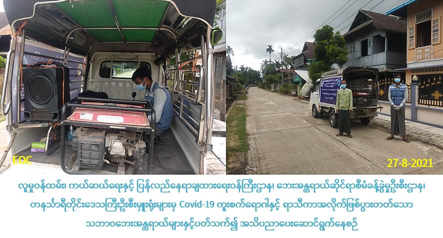 လူမှုဝန်ထမ်း၊ ကယ်ဆယ်ရေးနှင့် ပြန်လည်နေရာချထားရေးဝန်ကြီးဌာန၊ ဘေးအန္တရာယ်ဆိုင်ရာစီမံခန့်ခွဲမှုဦးစီးဌာန၊ တနင်္သာရီတိုင်းဒေသကြီးဦးစီးမှူးရုံးမှ တာဝန်ရှိသူများသည် (၂၇-၈-၂၀၂၁) ရက်နေ့၌ ရေဖြူမြို့နယ် (ခ) ရပ်ကွက်တွင် ကျန်းမာရေးဝန်ကြီးဌာနမှ ထုတ်ပြန်ထားသော Covid-19 ကူးစက်မှုမဖြစ်စေရန် အသိပညာပေးခြင်း၊ ရာသီအလိုက်ဖြစ်ပွားတတ်သော သဘာဝဘေးအန္တရာယ်များနှင့်ပတ်သက်သည့် ဆောင်ရန်/ရှောင်ရန်များအား အသိပညာပေးခြင်းများအား ရေဖြူမြို့နယ် အထွေထွေအုပ်ချုပ်ရေးဦးစီးဌာနနှင့်အတူ ပူးပေါင်းဆောင်ရွက်ခဲ့ပါကြောင်း သတင်းရရှိပါသည်။