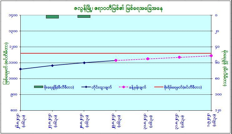 ယနေ့မြန်မာစံတော်ချိန် (၀၇:၃၀)နာရီအချိန် တိုင်းထွာချက်အရ ဧရာဝတီမြစ်ရေသည် ဆိပ်သာမြို့တွင် ယင်းမြို့၏ စိုးရိမ်ရေမှတ်အောက် (၁)ပေခန့်၊ ဟင်္သာတမြို့တွင် ယင်းမြို့၏ စိုးရိမ်ရေ မှတ်အောက် (၁)ပေခွဲခန့်နှင့် ဇလွန်မြို့တွင် ယင်းမြို့၏ စိုးရိမ်ရေမှတ်အောက် (၁)ပေခွဲခန့်တို့တွင် ရောက်ရှိနေပါသည်။ အဆိုပါမြစ်ရေသည် နောက်(၃)ရက်အတွင်း ယင်းမြို့များ၏ စိုးရိမ်ရေမှတ် အနီးသို့ ရောက်ရှိနိုင်ပါသည်။