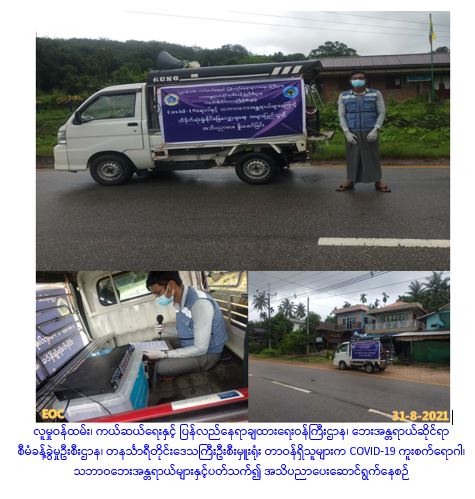 လူမှုဝန်ထမ်း၊ ကယ်ဆယ်ရေးနှင့် ပြန်လည်နေရာချထားရေးဝန်ကြီးဌာန၊ ဘေးအန္တရာယ်ဆိုင်ရာစီမံခန့်ခွဲမှုဦးစီးဌာန၊ တနင်္သာရီတိုင်းဒေသကြီးဦးစီးမှူးရုံးမှ တာဝန်ရှိသူများသည် (၃၁-၈-၂၀၂၁)ရက်နေ့၌ ရေဖြူမြို့နယ် (ဃ)ရပ်ကွက်တွင် ကျန်းမာရေးဝန်ကြီးဌာနမှ ထုတ်ပြန်ထားသော Covid-19 ကူးစက်မှုမဖြစ်စေရေးအတွက် လိုက်နာရန်အချက်များကို အသိပညာပေးခြင်း၊ ရာသီအလိုက်ဖြစ်ပွားတတ်သော သဘာဝဘေးအန္တရာယ်များနှင့်ပတ်သက်သည့် ဆောင်ရန်/ရှောင်ရန်များအား အသိပညာပေးခြင်းများ ဆောင်ရွက်ခဲ့ပါကြောင်း သတင်းရရှိပါသည်။