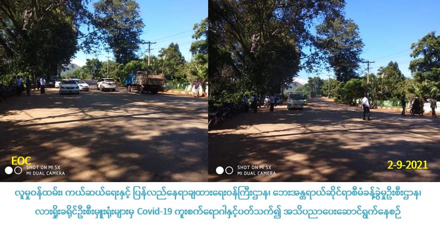 လူမှုဝန်ထမ်း၊ ကယ်ဆယ်ရေးနှင့် ပြန်လည်နေရာချထားရေးဝန်ကြီးဌာန၊ ဘေးအန္တရာယ်ဆိုင်ရာစီမံခန့်ခွဲမှုဦးစီးဌာန၊ လားရှိုးခရိုင်ဦးစီးမှူးရုံးမှ တာဝန်ရှိသူများသည် ဌာနဆိုင်ရာများ၊ ရပ်ကွက်လူမှုရေးအသင်းအဖွဲ့များနှင့်ပူးပေါင်းပြီး လားရှိုးမြို့နေပြည်သူများ COVID-19 ကြိုတင်ကာကွယ်နိုင်ရန် ရည်ရွယ်၍ အများပြည်သူသွားလာအသုံးပြုသောလမ်းများ ရပ်ကွက်များသို့ လှည့်လည်၍ ကျန်းမာရေးနှင့်အားကစားဝန်ကြီးဌာနမှ Stay at Home မြို့များအတွက် ထုတ်ပြန်ထားသောအသိ ပညာပေးစာသားများကို ဖတ်ကြားခြင်းနှင့် သဘာဝဘေးအသိပညာပေး လက်ကမ်းစာစောင်များဖြန့်ဝေခြင်းကို (၂-၉-၂၀၂၁) ရက်နေ့၌ ပြည်ထောင်စုလမ်းမကြီးပေါ်တွင် ဆောင်ရွက်ခဲ့ပါကြောင်း သတင်းရရှိပါသည်။