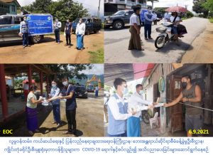 လှုမှုဝန်ထမ်း၊ ကယ်ဆယ်ရေးနှင့်ပြန်လည်နေရာချထားရေးဝန်ကြီးဌာန၊ ဘေးအန္တရာယ်ဆိုင်ရာစီမံခန့်ခွဲမှုဦးစီးဌာန၊ ကျိုင်းတုံခရိုင်ဦးစီးမှူးရုံးမှတာဝန်ရှိသူများသည် (၆-၉-၂၀၂၁) ရက်နေ့၊ နံနက်ပိုင်းတွင် ကျိုင်းတုံမြို့နယ်၊ ကတ်တောင်ကျေးရွာအုပ်စု၊ ကတ်တောင်ကျေးရွာ၊ ယန်းဟောင် ကျေးရွာ၊ ကတ်ဝမ်ကျေးရွာ၊ နောင်အော့ကျေးရွာ၊ နောင်ကန်ကျေးရွာနှင့် ဝမ်ငမ်းကျေးရွာတို့တွင် COVID-19 ရောဂါ ကူးစက်ပျံ့နှံ့မှုများ မဖြစ်ပွားစေရေးအတွက် ဆောင်ရန်/ ရှောင်ရန် အချက်များကို အသံချဲ့စက်ဖြင့်နှိူးဆော်ခြင်း၊ အသိပညာပေးလက်ကမ်းစာစောင်နှင့် တစ်ခါသုံး Mask များဝေငှခြင်းတို့ကို ဆောင်ရွက်ခဲ့ပါကြောင်း သတင်းရရှိပါသည်။
