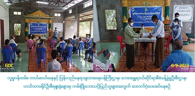 လူမှုူဝန်ထမ်း၊ ကယ်ဆယ်ရေးနှင့် ပြန်လည်နေရာချထားရေးဝန်ကြီးဌာန၊ ဟင်္သာတခရိုင်ဦးစီးမှူးရုံးမှ တာဝန်ရှိသူများသည် ဟင်္သာမြို့နယ်၊ အိပ်ပျက်ကျေးရွာအုပ်စု၊ ဖောင်ဆိပ်ကျေးရွာ၌ (၂-၉-၂၀၂၁) ရက်နေ့မှ (၅-၉-၂၀၂၁) ရက်နေ့အထိ ဖြစ်ပွားခဲ့သော ကမ်းပြိုဘေးကြောင့် ရွှေ့ပြောင်းအိမ်ခြေ(၇၅)လုံးအတွက် အိမ်ဆောက်ပစ္စည်းရန်ပုံငွေ (၇,၅၀၀,၀၀၀) ကျပ်၊ လူဦးရေ (၂၂၇) ဦးအတွက် ဆန်ရိက္ခာဖိုးရန်ပုံငွေ (၅၈၁,၇၀၀) ကျပ်၊ စုစုပေါင်းရန်ပုံငွေ (၈,၀၈၁,၇၀၀) ကျပ်နှင့် Surgical Masks (၅၅၄) ခုတို့အား (၆-၉-၂၀၂၁) ရက်နေ့ (၁၄:၃၀) နာရီတွင် ခရိုင်သဘာဝဘေးအန္တရာယ်ဆိုင်ရာစီမံခန့်ခွဲမှုအဖွဲ့ ဥက္ကဋ္ဌ၊ ဒုတိယခရိုင်အုပ်ချုပ်ရေးမှူးတို့နှင့်အတူ ဘေးသင့်ပြည်သူများထံသို့ လက်ဝယ်အရောက် သွားရောက်ထောက်ပံ့ပေးအပ်ခဲ့ပါကြောင်း သတင်းရရှိပါသည်။