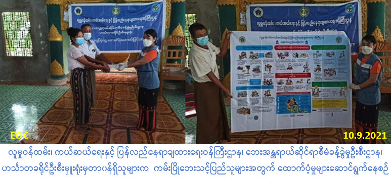 လှုမှုဝန်ထမ်း၊ ကယ်ဆယ်ရေးနှင့်ပြန်လည်နေရာချထားရေးဝန်ကြီးဌာန၊ ဘေးအန္တရာယ်ဆိုင်ရာစီမံခန့်ခွဲမှုဦးစီးဌာန၊ ဟင်္သာတခရိုင်ဦးစီးမှူးရုံးမှတာဝန်ရှိသူများသည် ဟင်္သာမြို့နယ်၊ အိပ်ပျက်ကျေးရွာအုပ်စု၊ ဖောင်ဆိပ်ကျေးရွာ၌ ကမ်းပြိုဘေးဖြစ်ပွားခဲ့သောကြောင့် (၆-၉-၂၀၂၁)ရက်နေ့မှ (၉-၉-၂၀၂၁)ရက်နေ့အထိ ရွှေ့ပြောင်းအိမ်ခြေ(၅၂)လုံးအတွက် အိမ်ဆောက်ပစ္စည်းဖိုးထောက်ပံ့ငွေ(၅,၂၀၀,၀၀၀/-)ကျပ်၊ ဘေးသင့်လူဦးရေ(၁၈၇)ဦးအတွက် ဆန်ရိက္ခာဖိုးထောက်ပံ့ငွေ (၃၉၂,၇၀၀)ကျပ်၊ စုစုပေါင်းထောက်ပံ့ငွေ(၅,၅၉၂,၇၀၀)ကျပ်နှင့် Surgical Masks (၃၇၄)ခုအား ဟင်္သာတမြို့နယ်စီမံအုပ်ချုပ်ရေးအဖွဲ့ရုံးမှတာဝန်ရှိသူများနှင့်အတူ ဘေးသင့်ပြည်သူများထံသို့ ထောက်ပံ့ပေးအပ်ခဲ့ပါကြောင်း သတင်းရရှိပါသည်။