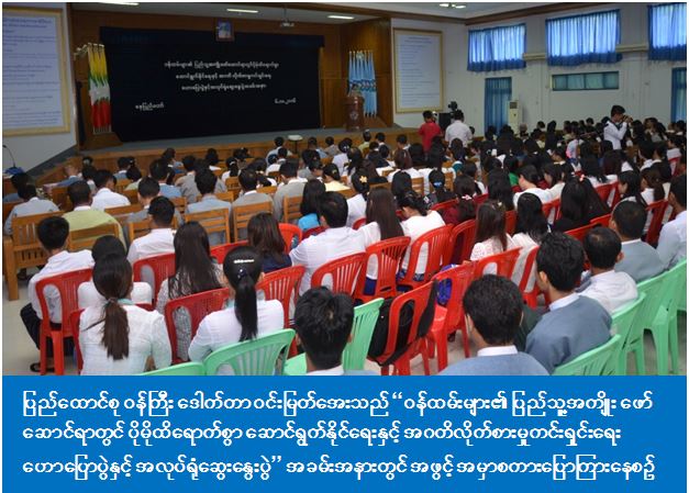 နေပြည်တော်ရှိ လူမှုဝန်ထမ်း၊ ကယ်ဆယ်ရေးနှင့် ပြန်လည်နေရာချထားရေး ဝန်ကြီးဌာန၊ အစည်းအဝေးခန်းမတွင် အောက်တိုဘာ (၆) ရက်၊ နံနက် (၉) နာရီတွင် ကျင်းပသည့် ဝန်ထမ်းများ၏ ပြည်သူ့အကျိုး ဖော်ဆောင်ရာတွင် ပိုမိုထိရောက်စွာ ဆောင်ရွက်နိုင်စေရေးနှင့် အဂတိလိုက်စားမှုကင်းရှင်းရေး အလုပ်ရုံဆွေးနွေးပွဲတွင် ပြည်ထောင်စု ဝန်ကြီးက ပြောကြားခဲ့ခြင်း ဖြစ်သည်။