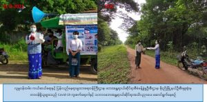 လူမှုဝန်ထမ်း၊ ကယ်ဆယ်ရေးနှင့် ပြန်လည်နေရာချထားရေးဝန်ကြီးဌာန၊ ဘေးအန္တရာယ်ဆိုင်ရာစီမံခန့်ခွဲမှု ဦးစီးဌာန၊ ပဲခူးတိုင်းဒေသကြီး၊ သာယာဝတီခရိုင်၊ မိုးညိုမြို့နယ်ဦးစီးမှူးရုံးမှ ဝန်ထမ်းများသည် (၂၁-၉-၂၀၂၁) ရက်နေ့၊ (၀၈း၀၀) အချိန်မှ (၁၁း၃၀) အချိန်အထိမော်တော်ယာဥ်ဖြင့်လှည့်လည်၍မိုးညိုမြို့နယ်၊ ညောင်ဝိုင်းကျေးရွာ၊ ငှက်ပျောတုံးကျေးရွာ၊ ဆင်ကျွန်းကျေးရွာ၊ ကျားကျွန်းကျေးရွာ၊ မိုးသီတာကျေးရွာ၊ ပေါက်ကုန်းကျေး ရွာ၊ ရှောက်ပင်ကွင်းကျေးရွာနှင့်ဗောဓိကုန်းကျေးရွာတို့တွင် COVID-၁၉ ရောဂါ ကူးစက်ပြန့်ပွားမှုမရှိစေရေး လိုက်နာဆောင်ရွက်ရန်အချက်များအားလည်းကောင်း၊ သဘာဝဘေး အန္တရာယ်များနှင့်ပတ်သက်၍ ဆောင်ရန်/ရှောင်ရန်အချက်များအားလည်းကောင်း မြို့နယ်ပြန်/ဆက်နှင့် ပူးပေါင်း၍ အသိပညာပေးဆော်ဩခဲ့ပြီး ပြည်သူလူထုအား Surgical Mask နှင့် လက်ကမ်းစာစောင်များဖြန့်ဝေပေးခဲ့ပါကြောင်း သတင်းရရှိပါသည်။