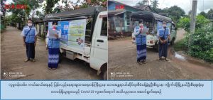 လူမှုဝန်ထမ်း၊ ကယ်ဆယ်ရေးနှင့် ပြန်လည်နေရာချထားရေးဝန်ကြီးဌာန၊ ဘေးအန္တရာယ်ဆိုင်ရာစီမံခန့်ခွဲမှု ဦးစီးဌာန၊ ကျိုက်ထိုမြို့နယ်ဦးစီမှူးရုံးမှ တာဝန်ရှိသူများသည် (၂၂-၉-၂၀၂၁)ရက်နေ့တွင် (၁၀:၃၀)နာရီအချိန်မှ (၁၂:၀၀)နာရီအချိန်အထိ မွန်ပြည်နယ်၊ ကျိုက်ထိုမြို့နယ်၊ ခလွန်ကျေးရွာနှင့် ကမ်းနီကျေးရွာတို့တွင် နေထိုင်သောပြည်သူများအား Covid-19 ကူးစက်ပျံ့နှံ့မှုများ မဖြစ်ပွားစေရန်အတွက် လိုက်နာဆောင်ရွက်ရမည့် ဆောင်ရန်/ ရှောင်ရန်အချက်များကို Hand Speaker တို့ဖြင့်လှည့်လည်အသိပေးဟောပြောခြင်းအား ဆောင်ရွက်ခဲ့ပါကြောင်း သတင်းရရှိပါသည်။