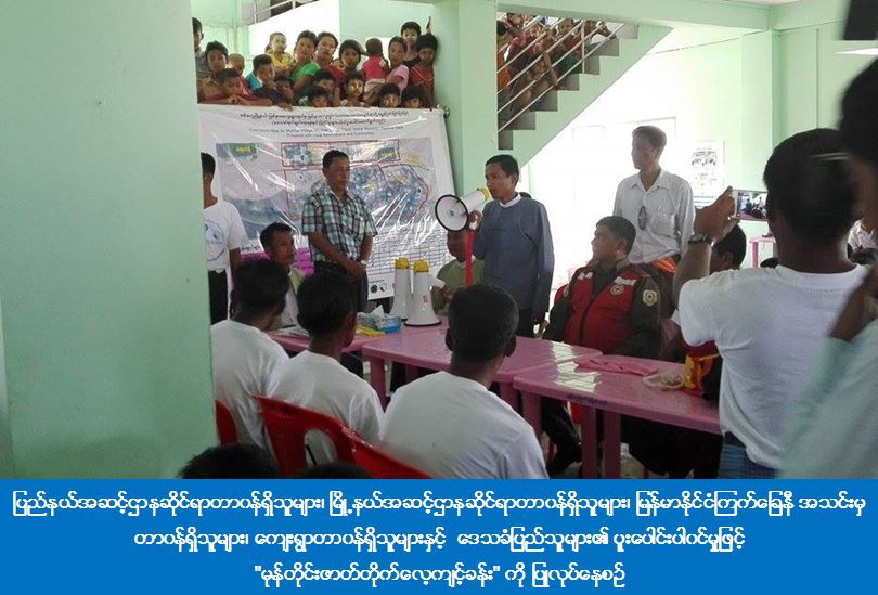 ရခိုင်ပြည်နယ်၊ စစ်တွေမြို့နယ်၊ မင်းလှကျေးရွာ၌ ရခိုင်ပြည်နယ်ဦးစီးမှူးရုံး (ကဆရ) နှင့် ADPC တို့ ပူးပေါင်း၍ “မုန်တိုင်းဇာတ်တိုက်လေ့ကျင့်ခန်း” ကို (၁၁-၁၀-၂၀၁၆) ရက်နေ့၊ နံနက် (၀၉:၃၀) နာရီမှ (၁၁:၂၀) နာရီအချိန်ထိ ပြုလုပ်ခဲ့ရာ အဆိုပါဇတ်တိုက်လေ့ကျင့်ခန်းသို့ ပြည်နယ်အဆင့်ဌာနဆိုင်ရာတာဝန်ရှိသူများ၊ မြို့နယ်အဆင့်ဌာနဆိုင်ရာတာဝန်ရှိသူများ၊ မြန်မာနိုင်ငံကြက်ခြေနီအသင်းမှ တာဝန်ရှိသူများ၊ ကျေးရွာတာဝန်ရှိသူများနှင့် ဒေသခံပြည်သူ (၃၀၀) ဦးခန့် တက်ရောက်ပါဝင်ခဲ့ကြကြောင်း သိရှိရပါသည်။