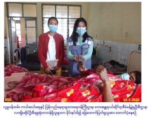 လူမူဝန်ထမ်း၊ ကယ်ဆယ်ရေးနှင့်ပြန်လည်နေရာချထားရေးဝန်ကြီးဌာန၊ ဘေးအန္တရာယ်ဆိုင်ရာစီမံခန့်ခွဲမှုဦးစီးဌာန၊ လားရှိုးခရိုင်ဦးစီးမှူးရုံးမှ တာဝန်ရှိသူများသည် (၁၂-၁-၂၀၂၂) ရက်နေ့(၁၇:၂၅)ချိန်ခန့်တွင် ကွတ်ခိုင်မြို့နယ်၊ အင်မိန်းဟိုကျန့်ကျေးရွာအုပ်စု၊ ကုန်းဆာကျေးရွာနေ ဦးအိုက်လျိုဆာ၊ အသက်(၂၆)နှစ်၊ ပလောင်/ ဗုဒ္ဓသည် တောထဲသို့ထင်းခုတ်သွားရာ၌ မိုင်းနင်းမိ၍ ယာဘက်ခြေကျင်းဝတ်အထက်မှပြတ်ရှခဲ့သဖြင့် လားရှိုးပြည်သူ့ဆေးရုံသို့ ပို့ဆောင်ကုသမှုခံယူလျက်ရှိရာ အဆိုပါပြည်သူအတွက် ထောက်ပံ့ငွေ (၅၀၀၀၀ိ/-)ကျပ်အား (၁၃-၁-၂၀၂၂)ရက်နေ့တွင် ထောက်ပံ့ပေးအပ်ခဲ့ပါကြောင်း သတင်းရရှိပါသည်။