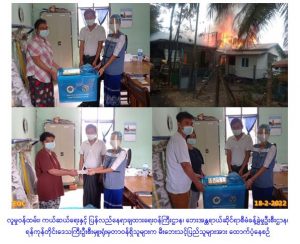 လူမှုဝန်ထမ်း၊ ကယ်ဆယ်ရေးနှင့် ပြန်လည်နေရာချထားရေးဝန်ကြီးဌာန၊ ဘေးအန္တရာယ်ဆိုင်ရာစီမံခန့်ခွဲမှုဦးစီးဌာန၊ ရန်ကုန်တိုင်းဒေသကြီးဦးစီးမှူးရုံးမှ တာဝန်ရှိသူများသည် (၁၇-၂-၂၀၂၂)ရက်နေ့၊ (၀၇း၃၀)နာရီအချိန်တွင် ဒဂုံမြို့သစ်(အရှေ့ပိုင်း)မြို့နယ်၊ အမှတ်(၁၃)ရပ်ကွက်၊ စက်မှုလယ်ယာ(၁)လမ်းတွင် ဖြစ်ပွားခဲ့သောမီးဘေးကြောင့် လုံးဝပျက်စီးနေအိမ် (၁)လုံးအတွက် အိမ်ဆောက်ပစ္စည်းဖိုးထောက်ပံ့ငွေကျပ် (၂၀၀၀၀၀ိ/-)၊ အိမ်ထောင်စု(၅)စုမှ လူဦးရေ (၁၄)ဦးအတွက် ဆန်ရိက္ခာဖိုးထောက်ပံ့ငွေကျပ် (၂၉၄၀၀ိ/-)၊ ကယ်ဆယ်ရေးပစ္စည်း (၁၇)မျိုး (၅)အိမ်ထောင်စာနှင့် ကိုဗစ်-၁၉ ကြိုတင်ကာကွယ်နိုင်ရေးအတွက် အိမ်ထောင်စု(၅)စုအတွက် ဆပ်ပြာ(၅)တောင့်၊ လူဦးရေ (၁၄)ဦးအတွက် Mask(၂၈)ခုတို့အား အထွေထွေအုပ်ချုပ်ရေးဦးစီးဌာနမှ တာဝန်ရှိသူများနှင့်အတူ ဘေးသင့်ပြည်သူများလက်ဝယ်အရောက် (၁၈-၂-၂၀၂၀)ရက်နေ့ (၁၁း၀၀)နာရီအချိန်တွင် သွားရောက်ထောက်ပံ့ပေးအပ်ခဲ့ပါကြောင်း သတင်းရရှိပါသည်။
