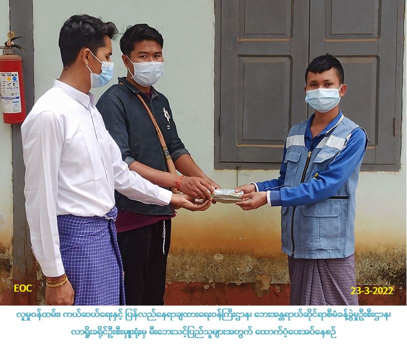 လူမှုဝန်ထမ်း၊ ကယ်ဆယ်ရေးနှင့် ပြန်လည်နေရာချထားရေးဝန်ကြီးဌာန၊ ဘေးအန္တရာယ်ဆိုင်ရာစီမံခန့်ခွဲမှုဦးစီးဌာ၊ လားရှိခရိုင်ဦးစီးမှူးရုံးမှ တာဝန်ရှိသူများသည် (၉-၃-၂၀၂၂) ရက်နေ့ (၂၁:၃၀) ချိန်တွင် တန့်ယန်းမြို့၊ ရပ်ကွက်(၃)၊ အုပ်စု(၆)ဗိုလ်ချုပ်လမ်းဘေးရှိ နေအိမ်မှတဆင့် မီးကူးစက်လောင်ကျွမ်းခဲ့ရာ ပျဉ်ကာ/သွပ်မိုး၊ (၂)ထပ်အိမ်၊ (၄)လုံးမီးလောင်ကျွမ်းခဲ့ပြီး အိမ်ထောင်စု(၄)စု၊ လူဦးရေ(၇)ဦး မီးဘေးသင့်ခဲ့ရာ ထောက်ပံ့ငွေ(၁,၁၁၄,၇၀၀)ကျပ်နှင့် ကယ်ဆယ်ရေးပစ္စည်း(၂၂)မျိုး၊ (၄)အိမ်ထောင်စုစာအား (၂၃-၃-၂၀၂၂)ရက်နေ့၌ ထောက်ပံ့ပေးအပ်ခဲ့ပါကြောင်း သတင်းရရှိပါသည်။