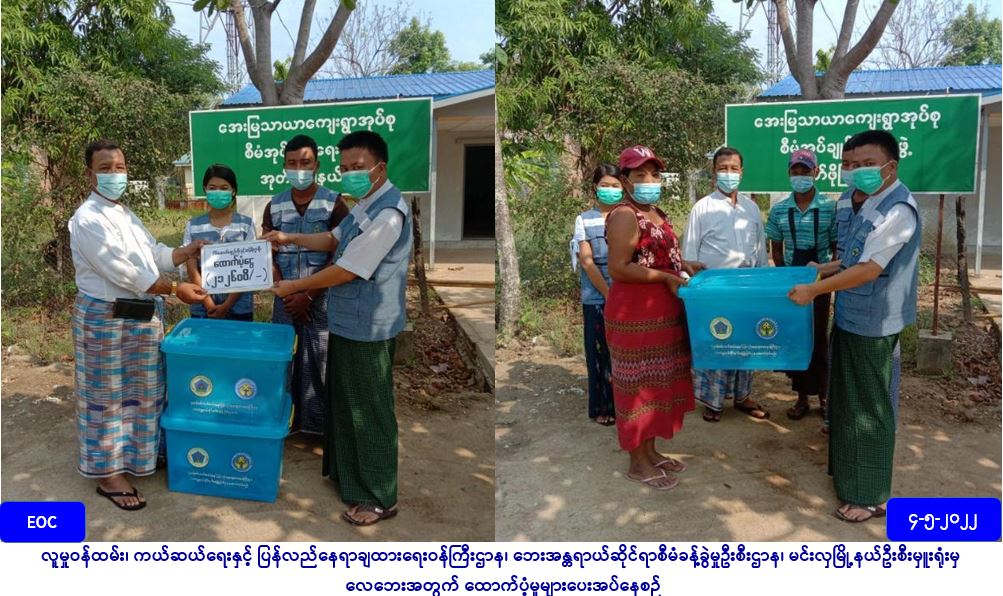လူမှုဝန်ထမ်း၊ ကယ်ဆယ်ရေးနှင့် ပြန်လည်နေရာချထားရေးဝန်ကြီးဌာန၊ ဘေးအန္တရာယ်ဆိုင်ရာစီမံခန့်ခွဲမှုဦးစီးဌာန၊ ပဲခူးတိုင်းဒေသကြီး၊ သာယာဝတီခရိုင်၊ မင်းလှမြို့နယ်ဦးစီးမှူးရုံးမှ တာဝန်ရှိသူများသည် (၂-၅-၂၀၂၂)ရက်နေ့ (၂၀း၃၀) အချိန်၌ အုတ်ဖိုမြို့နယ်၊ အေးမြသာယာ ကျေးရွာအုပ်စု၊ အောင်သုခကျေးရွာတွင် ဖြစ်ပွားခဲ့သောလေဘေး ကြောင့် ပြိုကျပျက်စီးလူနေအိမ်(၂) လုံးအတွက် အိမ်ဆောက်ပစ္စည်း ဖိုးထောက်ပံ့ငွေ (၂၀၀၀၀ဝ/-)ကျပ်၊ အိမ်ထောင်စု (၂)စုရှိလူဦးရေ (၆)ဦးတို့အတွက် ဆန်ဖိုးထောက်ပံ့ငွေ (၁၂၆၀ဝ/-)ကျပ်၊ စုစုပေါင်း ထောက်ပံ့ငွေ (၂၁၂၆၀ဝ/-) ကျပ်နှင့် ကယ်ဆယ်ရေးပစ္စည်း (၁၇)မျိုးပါ (၂)အိမ်ထောင်စု စာနှင့်စက္ကူ ကတ်ထူပုံး (၂) ပုံးတို့အား (၄-၅-၂၀၂၂) ရက်နေ့ (၀၉:၃၀)နာရီအချိန်တွင် မြို့နယ်အထွေထွေအုပ်ချုပ်ရေးဦးစီး ဌာနမှ တာဝန်ရှိသူများ၊ ကျေးရွာအုပ်ချုပ်ရေးမှူးများနှင့်အတူ ဘေး ဖြစ်ပွားရာ အေးမြသာယာကျေးရွာအုပ်စု၊ အေမြသာယာအုပ်ချုပ် ရေးမှူးရုံး၌ ဘေးသင့်ပြည်သူများ၏လက်ဝယ်သို့ ထောက်ပံ့ပေးအပ်ခဲ့ပါ ကြောင်း သတင်းရရှိပါသည်။