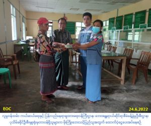 လူမှု၀န်ထမ်း၊ ကယ်ဆယ်ရေးနှင့်ပြန်လည်နေရာချထားရေး၀န်ကြီးဌာန၊ ဘေးအန္တရာယ်ဆိုင်ရာစီမံခန့်ခွဲမှုဦးစီးဌာန၊ ပုသိမ်ခရိုင်ဦးစီးမှူးရုံးမှတာ၀န်ရှိသူများသည်(၂၃-၆-၂၀၂၂)ရက်နေ့တွင် ပုသိမ်ခရိုင်၊ ကန်ကြီးထောင့်မြို့နယ်၊ ကျွန်တောကုန်းကျေးရွာအုပ်စု၊ ကျွန်တောကုန်းရွာ၌ မိုးကြိုးဘေးဖြစ်ပွားခဲ့ရာ အဆိုပါ မိုးကြိုးဘေးကြောင့် သေဆုံးသူ(၁)ဦးအတွက် ထောက်ပံ့ငွေ (၃၀၀,၀၀ဝ/-)ကျပ်အား (၂၄-၆-၂၀၂၂)ရက်နေ့ (၁၄:၅၀)နာရီအချိန်တွင် သက်ဆိုင်ရာတာ၀န်ရှိသူများနှင့်အတူ သေဆုံးသူမိသားစု၀င်များ၏ လက်၀ယ်သို့ ထောက်ပံ့ပေးအပ်ခဲ့ပါကြောင်း သတင်းရရှိပါသည်။