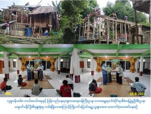 လူမှုဝန်ထမ်း၊ ကယ်ဆယ်ေရးနှင့် ပြန်လည်ေနရာချထားရေးဝန်ကြီးဌာန၊ ဘေးအန္တရာယ်ဆိုင်ရာစီမံခန့်ခွဲမှုဦးစီးဌာန၊ မအူပင်ခရိုင်ဦးစီးမှူးရုံးမှ တာဝန်ရှိသူများသည် ဧရာဝတီတိုင်းဒေသကြီး၊ မအူပင်ခရိုင်၊ ပန်းတနော်မြို့နယ်၊ တောကျောင်းကျေးရွာအုပ်စု၊ နံကပ်ရိုးကျေးရွာနှင့် ကျော်းတော်ကလေးကျေးရွာတို့၌ (၁၆-၈-၂၀၂၂) ရက်နေ့တွင် ဖြစ်ပွားခဲ့သောကမ်းပြိုဘေးကြောင့်ကြိုတင်ဖျက်သိမ်းပြောင်းရွှေ့ခဲ့သည့် နေအိမ် (၁၅)လုံး၊ အိမ်ထောင်စု (၁၅)စုမှ လူဦးရေ (၆၉)ဦးအတွက် ဆန်ရိက္ခာ (၇)ရက်စာဖိုး ရန်ပုံငွေ(၁၄၄,၉၀ဝ)ကျပ်၊ အိမ်ဆောက်ပစ္စည်းဖိုး ရန်ပုံငွေ (၁,၅၀၀,၀၀ဝ)ကျပ်၊ စုစုပေါင်း ကယ်ဆယ်ရေးရန်ပုံငွေ (၁,၆၄၄,၉၀ဝ)ကျပ်နှင့် ကာဘော်လိပ်ဆပ်ပြာ(၁၅)တောင့်အား (၁၇-၈-၂၀၂၂) ရက်ေန့ (၁၄:၄၅)ချိန်တွင် ပန်းတနော်မြို့နယ်အုပ်ချုပ်ရေးမှူးနှင့်အတူ ဘေးသင့်ပြည်သူထံသို့ လက်ဝယ်အရောက် ထောက်ပံ့ပေးအပ်ခဲ့ပါကြောင်း သတင်းရရှိပါသည်။