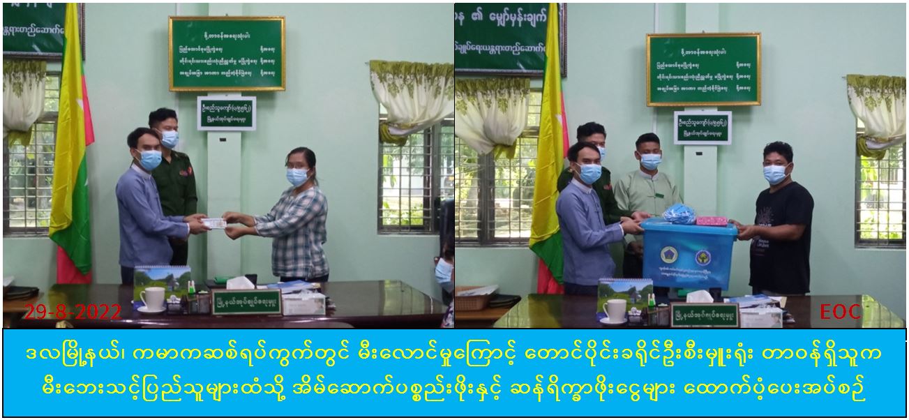 ၂၉-၈-၂၀၂၂ ရက်နေ့တွင် တွံတေးခရိုင်၊ ဒလမြို့နယ်၊ ကမာကဆစ်ရပ်ကွက်၊ ခရေလမ်းရှိ နေအိမ်(၁)လုံး၌ ခြင်ဆေးခွေထွန်းရာမှတဆင့် မီးလောင်မှုဖြစ်ပွားခဲ့ရာ ၎င်းအိမ်အပါအဝင် နေအိမ်(၂)လုံး မီးလောင်ပျက်စီး၍ အခြားနေအိမ်(၂)လုံးမှာ တစ်စိတ်တပိုင်းမီးလောင် ပျက်စီး ဆုံးရှုံးခဲ့ပြီး အိမ်ထောင်စု(၅)စုမှ လူဦးရေ(၂၄)ဦးတို့ မီးဘေးဒုက္ခခံစားခဲ့ရပါသည်။