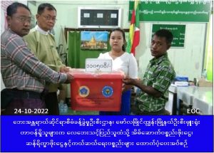 လူမှုဝန်ထမ်း၊ ကယ်ဆယ်ရေးနှင့်ပြန်လည်နေရာချထားရေးဝန်ကြီးဌာန၊ ဘေးအန္တရာယ်ဆိုင်ရာစီမံခန့်ခွဲမှုဦးစီးဌာန၊ ဧရာဝတီတိုင်းဒေသကြီး၊ မော်လမြိုင်ကျွန်းမြို့နယ်ဦးစီးမှူးရုံးမှ တာ၀န်ရှိသူများသည် ကြက်ရှာကျေးရွာအုပ်စု၊ ပေါင်တစ်ချောင်းကျေးရွာ၌ (၂၄.၁၀.၂၀၂၂)ရက်နေ့တွင် ဖြစ်ပွားခဲ့သော လေပြင်းဘေးကြောင့် ပြိုကျပျက်စီးခဲ့သည့်နေအိမ်(၁)လုံးအတွက် အိမ်ဆောက်ပစ္စည်းဖိုးထောက်ပံ့ငွေ(၁၀၀,၀၀ဝိ/-)၊ အိမ်ထောင်စု(၁)စုမှ လေဘေးသင့်ပြည်သူ (၅)ဦးအတွက် ဆန်ရိက္ခာ(၇)ရက်စာဖိုး ထောက်ပံ့ငွေ(၁၀,၅၀ဝိ/-)၊ ထောက်ပံ့ငွေစုစုပေါင်း (၁၁၀,၅၀ဝိ/-)ကျပ်နှင့် ကယ်ဆယ်ရေးပစ္စည်း(၁၉)မျိုးပါ ပလတ်စတစ်ပုံး(၁)ပုံးတို့အား (၂၆.၁၀.၂၀၂၂)ရက်နေ့၊ (၁၁:၀၀)အချိန်တွင် သက်ဆိုင်ရာတာဝန်ရှိသူတို့နှင့်အတူ လေဘေးသင့်ပြည်သူများ လက်ဝယ်အရောက်ထောက်ပံ့ပေးခဲ့ကြောင်း သတင်းရရှိပါသည်။