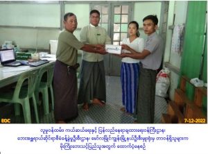 ဘေးအန္တရာယ်ဆိုင်ရာစီမံခန့်ခွဲမှုဦးစီးဌာန၊ မော်လမြိုင်ကျွန်းမြို့နယ်ဦးစီးမှူးရုံးမှတာဝန်ရှိသူများသည် မရမ်းကျေးရွာအုပ်စု၊ တောင်ပို့ကုန်းကျေးရွာ၌ (၅-၁၂-၂၀၂၂)ရက်နေ့၊ (၁၈:၀၀)နာရီအချိန်တွင် မိုးရွာသွန်းပြီးမိုးကြိုးပစ်ခတ်မှုကြောင့် သေဆုံးသူ(၁)ဦးအတွက် ကယ်ဆယ်ရေးထောက်ပံ့ငွေ (၃၀၀၀၀ဝိ/-)အား မော်လမြိုင်ကျွန်းမြို့နယ် အထွေထွေအုပ်ချုပ်ရေးဦးစီးဌာန၌ (၇-၁၂-၂၀၂၂) ရက်နေ့၊ (၁၀:၀၀)နာရီအချိန်တွင် ဒုတိယမြို့နယ်အုပ်ချုပ်ရေးမှူး၊ ကျေးရွာအုပ်ချုပ်ရေးမှူး၊ ရပ်/ကျေးစာရေး တို့နှင့်အတူ သေဆုံးသူ၏ မိသားစုဝင်များထံသို့ ထောက်ပံ့ပေးအပ်ခဲ့ပါကြောင်း သတင်းရရှိပါသည်။