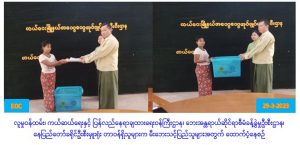 လူမှုဝန်ထမ်း၊ ကယ်ဆယ်ရေးနှင့် ပြန်လည်နေရာချထားရေးဝန်ကြီးဌာန၊ဘေးအန္တရာယ်ဆိုင်ရာစီမံခန့်ခွဲမှုဦးစီးဌာန၊ နေပြည်တော်တိုင်းဦးစီးမှူးရုံးမှ တာဝန်ရှိသူများသည်ပြည်ထောင်စုနယ်မြေ၊ နေပြည်တော်၊ လယ်ဝေးခရိုင်၊ လယ်ဝေးမြို့နယ်၊ အောင်သာကျေးရွာအုပ်စု၊ အောင်သပြေကျေးရွာအနီး (၂၇-၃-၂၀၂၃)ရက်နေ့၊ (၁၃:၀၀)အချိန်တွင် တောမီးလောင်ကျွမ်းခဲ့ရာမှ အောင်သပြေကျေးရွာရှိနေအိမ်(၁)လုံးအား မီးကူးစက်လောင်ကျွမ်းခဲ့ပါသဖြင့် မီးဘေးကြောင့် လုံးဝပျက်စီးဆုံးရှုံးခဲ့သော နေအိမ်(၁)လုံးအတွက် အိမ်ဆောက်ပစ္စည်းဖိုးထောက်ပံ့ငွေ(၁၀၀,၀၀ဝိ/-)၊ ဘေးသင့်လူဦးရေ(၅)ဦးအတွက် ဆန်ရိက္ခာဖိုးထောက်ပံ့ငွေ(၁၀,၅၀ဝိ/-)၊ စုစုပေါင်းထောက်ပံ့ငွေ(၁၁၀,၅၀ဝိ/-) နှင့်(၄၈,၅၁၁/-)တန်ဖိုးရှိ ကယ်ဆယ်ရေးပစ္စည်း(၁၈)မျိုးပါထောက်ပံ့ပစ္စည်းပုံး(၁)ပုံးတို့အား (၂၉-၃-၂၀၂၃) ရက်နေ့၊(၀၉:၀၀)နာရီအချိန်တွင် လယ်ဝေးမြို့နယ်၊ အထွေထွေအုပ်ချုပ်ရေးဦးစီးဌာန၌ ဘေးသင့်ပြည်သူများလက်ဝယ်သို့ ထောက်ပံ့ခဲ့ပါကြောင်း သတင်းရရှိပါသည်။