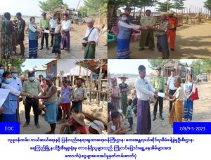 လူမှုဝန်ထမ်း၊ကယ်ဆယ်ရေးနှင့် ပြန်လည်နေရာချထားရေးဝန်ကြီးဌာန၊ ဘေးအန္တရာယ်ဆိုင်ရာ စီမံခန့်ခွဲမှုဦးစီးဌာန၊ ရေကြည်မြို့နယ်ဦးစီးမှုးရုံးမှတာဝန်ရှိသူများ၊ မစဖအဖွဲ့ဝင်များ၊ ငါးသိုင်းချောင်းမြို့၊ မြို့အုပ်ချုပ်ရေးမှူးနှင့် အဖွဲ့ဝင်များပူးပေါင်း၍ ငါးသိုင်းချောင်းမြို့၊ ငဝန်ရပ်ကွက်၊ ပိုက်သောင်ရပ်၊ ငဝန်မြစ်ကမ်းပါးတွင် မုန်တိုင်းဘေးအန္တရာယ်ကြောင့် (၇-၅-၂၀၂၃)ရက်နေ့၊ (၈-၅-၂၀၂၃)ရက်နေ့နှင့် (၉-၅-၂၀၂၃)ရက်နေ့တို့တွင် ကြိုတင်ဖျက်သိမ်းပြောင်းရွေ့ခဲ့ရသည့် စုစုပေါင်းနေအိမ် (၃၂)လုံး အတွက် အိမ်ဆောက်ပစ္စည်းဖိုးရန်ပုံငွေ (၃,၂၀၀,၀၀၀/-)ကျပ်၊ အိမ်ထောင်စု (၃၂)စု မှ စုစုပေါင်းလူဦးရေ (၁၅၂) ဦး အတွက် ဆန်ရိက္ခာ (၇)ရက်စာရန်ပုံငွေ (၃၁၉,၂၀၀ိ/-)ကျပ်၊ စုစုပေါင်းကယ်ဆယ်ရေးရန်ပုံ ငွေ (၃,၅၁၉,၂၀၀/-)ကျပ်အား (၇-၅-၂၀၂၃)၊ (၈-၅-၂၀၂၃)နှင့် (၉-၅-၂၀၂၃)ရက်နေ့တို့တွင် ဘေးသင့်ပြည်သူများလက်ဝယ်အရောက် ထောက်ပံ့ပေးအပ်ခဲ့ကြောင်း သတင်းရရှိပါသည်။