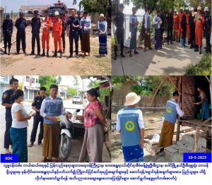 လူမှုဝန်ထမ်း၊ ကယ်ဆယ်ရေးနှင့် ပြန်လည်နေရာချထားရေးဝန်ကြီးဌာန၊ ဘေးအန္တရာယ်ဆိုင်ရာစီမံခန့်ခွဲမှုဦးစီးဌာန၊ သထုံခရိုင်၊ ပေါင်မြို့နယ်ဦးစီးမှူးရုံးမှ တာဝန်ဝန်ရှိသူများသည် (၁၀-၅-၂၀၂၃) ရက်နေ့တွင် မွန်ပြည်နယ်၊ သထုံ ခရိုင်၊ ပေါင်မြို့နယ်၊ မုတ္တမကျွဲခြံကျေးရွာနှင့် အလှပ်ကျေးရွာတို့တွင် မုန်တိုင်းအန္တရာယ်နှင့် ပတ်သက်၍ အသိပညာ ပေးခြင်း၊ လက်ကမ်းစာစောင်များဖြန့်ဝေခြင်းတို့ကို မြို့နယ်မီးသတ်တပ်ဖွဲ့ဝင်များ၊ ပြန်/ဆက်ဦးစီးဌာနမှ တာဝန်ရှိ သူများ၊ ရပ်ကျေးအုပ်ချုပ်ရေးမှူးများနှင့်ပူးပေါင်း ဆောင်ရွက်ခဲ့ပါကြောင်းသတင်းရရှိပါသည်။