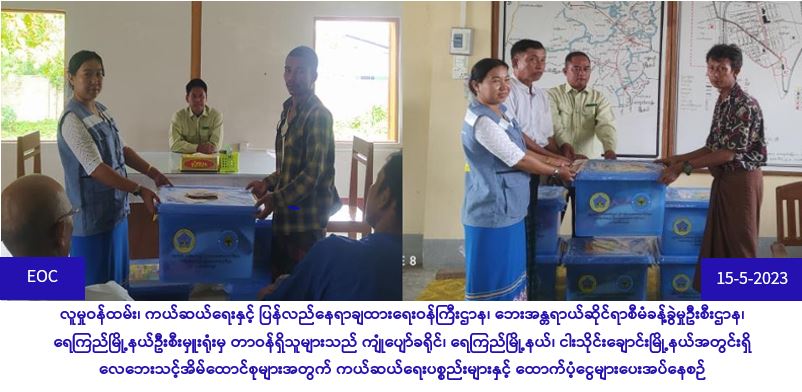 လူမှုဝန်ထမ်း၊ ကယ်ဆယ်ရေးနှင့် ပြန်လည်နေရာချထားရေးဝန်ကြီးဌာန၊ ဘေးအန္တရာယ်ဆိုင်ရာစီမံခန့်ခွဲမှု ဦးစီးဌာန၊ ရန်ကုန်တောင်ပိုင်းခရိုင်ဦးစီးမှူးရုံးမှ တာဝန်ရှိသူများသည် ခရမ်းမြို့နယ်၊ ကင်မွန်းခြုံကျေးရွာ အုပ်စု၊ ကင်မွန်းခြုံကျေးရွာ၌ (၁၃-၅-၂၀၂၃) ရက်နေ့တွင် ဖြစ်ပွားခဲ့သော လေဘေးကြောင့် အမိုးလန် ပျက်စီးနေအိမ် (၁)လုံး အိမ်ထောင်စု (၁)စု၊ လူဦးရေ (၄)ဦးနှင့် ညောင်ပင်ကွင်းကျေးရွာအုပ်စု၊ ဝန်းလေးဝ ကျေးရွာ(၁၄-၅-၂၀၂၃) ရက်နေ့တွင် ဖြစ်ပွားခဲ့သော လေဘေးကြောင့် အမိုးလန်ပျက်စီးနေအိမ် (၁)လုံး အိမ်ထောင်စု(၁)စုမှ လူဦးရေ(၄)ဦး၊ စုစုပေါင်း အိမ်ထောင်စု (၂)စု၊ လူဦးရေ (၈)ဦးအတွက် အိမ်ဆောက် ပစ္စည်းဖိုးထောက်ပံ့ငွေ (၈၅,၀၀ဝ)/-ကျပ်၊ ဆန်ရိက္ခာဖိုးထောက်ပံ့ငွေ (၁၆,၈၀ဝ/-)ကျပ်နှင့် ကင်မွန်းခြုံ ကျေးရွာ၌ (၁၄-၅-၂၀၂၃) ရက်နေ့တွင် ဖြစ်ပွားခဲ့သော လေပြင်းတိုက်ခတ်မှုကြောင့် ပြောင်းရွှေ့ အိမ်ထောင်စု (၇)စု၊ လူဦးရေ(၁၃)ဦးတို့အတွက် ဆန်ရိက္ခာဖိုးထောက်ပံ့ငွေ (၂၇,၃၀ဝ/-)ကျပ်၊ စုစုပေါင်း ထောက်ပံ့ငွေ (၁၂၉,၁၀ဝ/-)ကျပ်တို့အား (၁၆-၅-၂၀၂၃)ရက်နေ့တွင် ဘေးသင့်ပြည်သူများ လက်ဝယ်အရောက် သွားရောက်ထောက်ပံ့ပေးအပ်ခဲ့ကြောင်း သတင်းရရှိပါသည်။