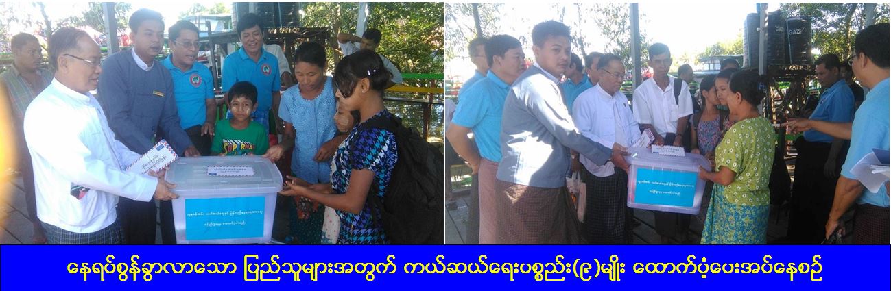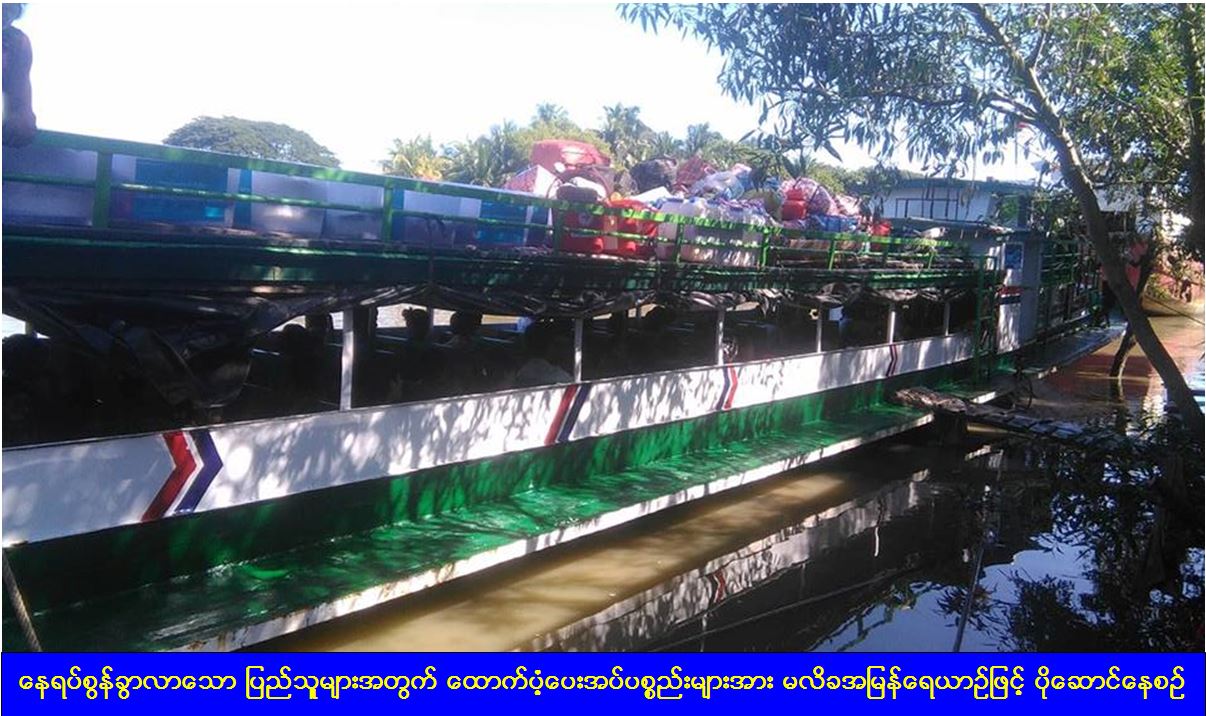 (၁-၁၁-၂၀၁၆) ရက်နေ့တွင် ရခိုင်ပြည်နယ်ဦးစီးမှူးရုံးမှ တာဝန်ရှိသူများသည် မောင်တောမှ ခေတ္တနေရပ်စွန့်ခွာလာသော စစ်တွေမြို့၌ ယာယီထားရှိရာကယ်ဆယ်ရေးစခန်းရောက် အိမ်ထောင်စု(၄၁)စု၊ လူဦးရေ(၁၁၀)ဦးတို့အတွက် တစ်အိမ်ထောင်လျှင် ကယ်ဆယ်ရေးပစ္စည်း(၉)မျိုး (၁)စုံနှုန်းဖြင့် အိမ်ထောင်စု(၄၁)စုစာအတွက် စစ်တွေဆိပ်ကမ်းမှ မလိခအမြန်ရေယာဉ်ဖြင့် ပို့ဆောင်ကာ ထောက်ပံ့ပေးအပ်ခဲ့ကြောင်း သတင်းရရှိပါသည်။