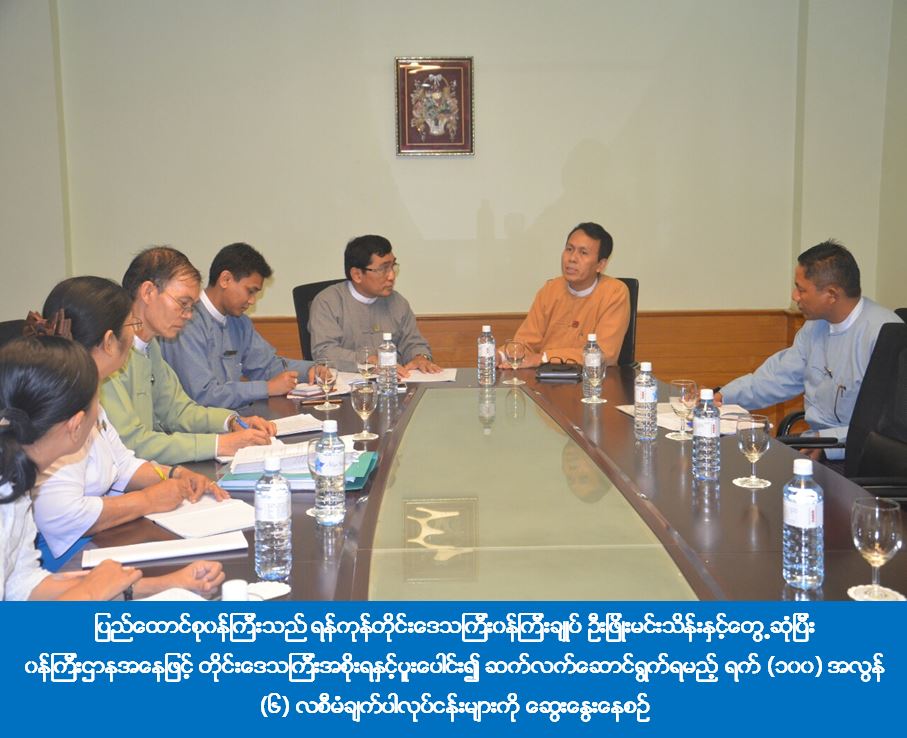 ပြည်ထောင်စုဝန်ကြီးသည် မွန်းလွဲပိုင်းတွင် တာမွေမြို့နယ်ရှိ Sky Star ဟိုတယ်တွင် ရန်ကုန်တိုင်းဒေသကြီးဝန်ကြီးချုပ် ဦးဖြိုးမင်းသိန်းနှင့် တွေ့ဆုံပြီး ဝန်ကြီးဌာနအနေဖြင့် တိုင်းဒေသကြီးအစိုးရနှင့်ပူးပေါင်း၍ ဆက်လက်ဆောင်ရွက်ရမည့် ရက် (၁၀၀) အလွန် (၆) လစီမံချက်ပါလုပ်ငန်းများကို ဆွေးနွေးခဲ့ကြပါသည်။