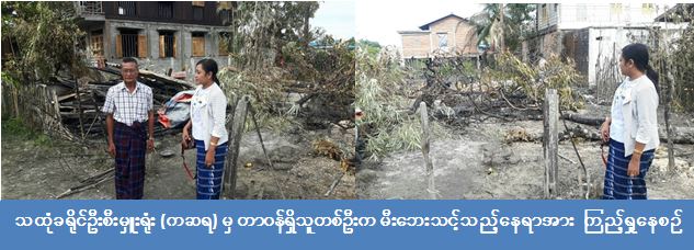 (၂-၁၁-၂၀၁၆) ရက်နေ့တွင် သထုံခရိုင်ကယ်ဆယ်ရေးနှင့် ပြန်လည်နေရာချထားရေး ဦးစီးမှူးရုံးမှ တာဝန်ရှိသူများသည် (၁-၁၁-၂၀၁၆) ရက်နေ့ ၊ ညနေ (၄) နာရီအချိန်တွင် ပေါင်မြို့နယ်၊ သဲကုန်းကျေးရွာအုပ်စုမြောက်ပိုင်း အ.ထ.က ကျောင်းအနီးနေ ဒေါ်အုန်းမြင့် နေအိမ် ပျဉ်ထောင်ပျဉ်ခင်း သွပ်မိုးနေအိမ်သည် မီးကျွင်းမီးကျန်မှတစ်ဆင့် မီးလောင်ကျွမ်းခဲ့ရာ အိမ်ခြေ (၁) လုံး အိမ်ထောင်စု (၁) စု လူဦးရေ (၁) ဦး မီးဘေး ဒုက္ခနှင့် ကြုံတွေ့ခဲ့ပါသည်။ ထိုမီးဘေးအတွက် သထုံခရိုင်ဦးစီးမှူးရုံးမှ အိမ်ထောင်စု (၁) စုစာ ကယ်ဆယ်ရေးပစ္စည်း (၉) မျိုး တန်ဖိုး (၂၂၀၆၆/-) ကျပ်၊ ဆန် (၃) ရက်စာ (၉၀၀) ကျပ်နှင့် အိမ်ဆောက်ပစ္စည်းဖိုး (၁၀၀,၀၀၀/-) ကျပ်၊ စုစုပေါင်း တန်ဖိုး (၁၂၂,၉၆၆/-) ကျပ်တို့ကို ထောက်ပံ့ပေးအပ်ခဲ့ကြောင်း သိရှိရပါသည်။