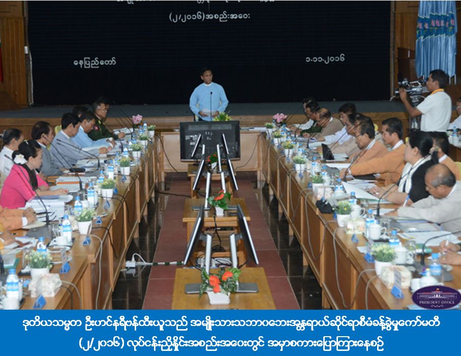 ဒုတိယသမ္မတက ၂၀၁၆ ခုနှစ် သဘာဝဘေး ဖြစ်ပွားခဲ့မှု ဖြစ်စဉ်များကို ပြန်လည်သုံးသပ်ကြည့်ပါက အယ်နီညို ရာသီဥတုနှင့် ဆက်စပ် ဖြစ်ပေါ်ခဲ့သည့် ရေရှားပါးပြတ်လပ် မှုတွင် လူမှုဝန်ထမ်း၊ ကယ်ဆယ်ရေးနှင့် ပြန်လည်နေရာ ချထားရေး ဝန်ကြီးဌာနအပါအဝင် ဆက်စပ်ဝန်ကြီးဌာနများမှ ပြည်သူကိုမျက်မှောက်ပြု၍ ပံ့ပိုး ကူညီခဲ့ကြသည် ကို တွေ့ရှိရမည်ဖြစ်ကြောင်း၊ ရေရှည်အတွက် ရေအရင်းအမြစ်များ ထိန်းသိမ်းခြင်း၊ ဖော်ထုတ်ခြင်းများ ဆက်လက်ဆောင်ရွက်သွားရမည်ဖြစ်ကြောင်း၊ မိုးသီး ကြွေကျ မှုနှင့် လေပြင်း တိုက်ခတ်မှု ဖြစ်စဉ်များတွင် နေရာအနှံ့ ကျယ်ပြန့်စွာ ဘေးသင့်ခဲ့မှုကြောင့် ဘေးသင့်ချိန်နှင့် ထောက်ပံ့ချိန် ကွာခြားမှု နည်းရန် ကြိုးစား ဆောင်ရွက်မှု ခက်ခဲခြင်း၊ ဘေးဒဏ်ခံ နေအိမ်များ ဆောက်လုပ်ရန် လိုအပ်ချက် ပိုမို ပေါ်လွင်ခြင်း တို့ကိုလည်း သုံးသပ်တွေ့ရှိရပါကြောင်း။