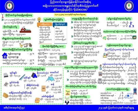 ဆိုင်ကလုန်းမုန်တိုင်း “မိုခါ (MOCHA)” ပြန်လည်ထူထောင်ရေးနှင့် ထောက်ပံ့ရေးလုပ်ငန်း များနှင့်စပ်လျဉ်း၍ (၁၃-၈-၂၀၂၃)နေ့၊ (၁၈:၀၀) နာရီအချိန်ထိ အချက်အလက်များအရ တိုင်းဒေသကြီး/ ပြည်နယ်အလိုက် ဆောင်ရွက်ခဲ့မှုအခြေအနေများမှာ အောက်ပါအတိုင်းဖြစ်ပါသည်-