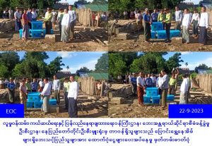 လူမှုဝန်ထမ်း၊ ကယ်ဆယ်ရေးနှင့် ပြန်လည်နေရာချထားရေးဝန်ကြီးဌာန၊ ဘေးအန္တရာယ် ဆိုင်ရာစီမံခန့်ခွဲမှုဦးစီးဌာန၊ နေပြည်တော်တိုင်းဦးစီးမှူးရုံးမှ တာဝန်ရှိသူများသည် နေပြည်တော် ကောင်စီအဖွဲ့ဝင် ဦးမြင့်စိုးနှင့်အတူ ပြည်ထောင်စု နယ်မြေ၊ နေပြည်တော်၊ လယ်ဝေးခရိုင်၊ လယ်ဝေးမြို့နယ်၊ ရှမ်းစုကျေးရွာအုပ်စု၊ ရှမ်းစုကျေးရွာ၌ (၂၀-၉-၂၀၂၃) ရက်နေ့၊ (၀၂:၃၀) အချိန်တွင် ကမ်းပြိုမှုကြောင့် ပြောင်းရွှေ့ခဲ့သော လူနေအိမ် (၄) လုံးအတွက် အိမ်ဆောက်ပစ္စည်းဖိုး ထောက်ပံ့ ငွေ ( ၄၀၀,၀၀ဝ/-)ကျပ်၊ ဘေးသင့်လူဦးရေ (၁၉)ဦး အတွက် ဆန်ရိက္ခာဖိုးထောက်ပံ့ငွေ (၃၉, ၉၀ဝ/-) ကျပ်၊ စုစုပေါင်းထောက်ပံ့ငွေ (၄၃၉, ၉၀ဝ/-) ကျပ်နှင့် ကယ်ဆယ်ရေးပစ္စည်း(၁၆)မျိုးပါ (၄၆,၀၃၆)ကျပ်တန်ဖိုးရှိ ကယ်ဆယ်ရေးပစ္စည်းပုံး (၄)ပုံးတို့အား (၂၂-၉-၂၀၂၃)ရက်နေ့၊ (၁၆:၃၀) အချိန် တွင် ဘေးသင့်ပြည်သူများလက်ဝယ်သို့ သွားရောက်ထောက်ပံ့ခဲ့ကြောင်း သတင်းရရှိပါသည်။