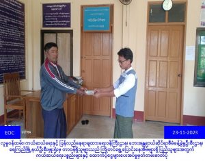 လူမှုဝန်ထမ်းကယ်ဆယ်ရေးနှင့် ပြန်လည်နေရာချထားရေးဝန်ကြီးဌာန၊ ဘေးအန္တရာယ် ဆိုင်ရာစီမံခန့်ခွဲမှုဦးစီးဌာန၊ ရေကြည်မြို့နယ်ဦးစီးမှုးရုံးမှ တာဝန်ရှိသူများသည် ရေကြည် မြို့နယ်၊ ကွင်းလျားကျေးရွာအုပ်စု၊ ဘုရားကုန်းကျေးရွာတွင် (၂၁-၁၁-၂၀၂၃)ရက်နေ့တွင် ဖြစ်ပွားသောကမ်းပြိုဘေးကြောင့် ကြိုတင်ဖျက်သိမ်းပြောင်းရွေ့ခဲ့ရသည့် နေအိမ် (၄)လုံးအတွက် အိမ်ဆောက်ပစ္စည်းဖိုးရန်ပုံငွေ (၄၀၀၀၀ဝ/-)ကျပ်၊ အိမ်ထောင်စု (၄) စုမှ စုစုပေါင်း လူဦးရေ (၁၂) ဦးအတွက် ဆန်ရိက္ခာ (၇) ရက်စာ ရန်ပုံငွေ (၂၅၂၀၀/-)ကျပ်၊ စုစုပေါင်း ကယ်ဆယ်ရေး ရန်ပုံငွေ (၄၂၅၂၀၀/-) ကျပ်အား (၂၃-၁၁-၂၀၂၃) ရက်နေ့ (၁၆:၃၀)နာရီအချိန်တွင် တာဝန်ရှိသူ များရှေ့မှောက်၌ ဘေးသင့်ပြည်သူများထံ လက်ဝယ်အရောက် ထောက်ပံ့ပေးအပ်ခဲ့ပါကြောင်း သတင်းရရှိပါသည်။