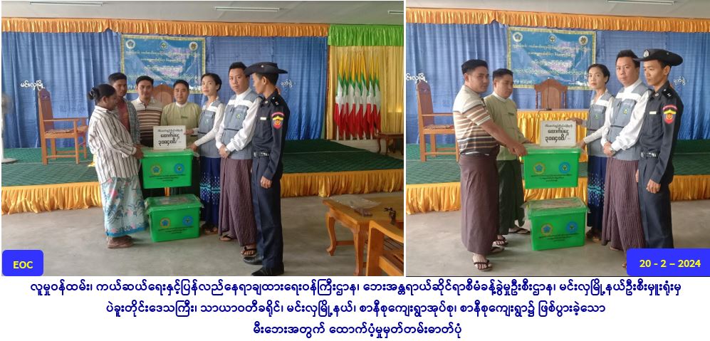 လူမှုဝန်ထမ်း၊ ကယ်ဆယ်ရေးနှင့်ပြန်လည်နေရာချထားရေးဝန်ကြီးဌာန၊ ဘေးအန္တရာယ်ဆိုင်ရာစီမံခန့်ခွဲမှုဦးစီးဌာန၊ မင်းလှမြို့နယ်ဦးစီးမှူးရုံးမှ တာဝန်ရှိသူများသည် (၁၆-၂-၂၀၂၄) ရက်နေ့ (၁၇း၀၀)နာရီအချိန်တွင် မင်းလှမြို့နယ်၊ စာနီစုကျေးရွာအုပ်စု၊ စာနီစုကျေးရွာ၌ ဖြစ်ပွားခဲ့သော မီးဘေးကြောင့် ပျက်စီးလူနေအိမ် (၃)လုံးအတွက် အိမ်ဆောက်ပစ္စည်းဖိုးထောက်ပံ့ငွေ (၃၀၀၀၀ဝ/-)ကျပ်၊ အိမ်ထောင်စု(၂)စုရှိ လူဦးရေ(၄)ဦး အတွက် ဆန်ရိက္ခာဖိုးထောက်ပံ့ငွေ (၈၄၀ဝ/-)ကျပ်၊ စုစုပေါင်းထောက်ပံ့ငွေ (၃၀၈၄၀ဝ/-)နှင့် အိမ်ထောင်စု(၂)စုစာအတွက် ကယ်ဆယ်ရေးပစ္စည်းလေးထောင့် ပလပ်စတစ်ပုံးပါ (၁၆)မျိုး(၂)ပုံး တန်ဖိုးငွေ (၉၂၀၇၂/-)ကျပ်နှင့် ကတ္ထူစက္ကူပုံး (၂) ပုံးတို့အား (၂၀-၂-၂၀၂၄) ရက်နေ့ (၁၀း၀၀)နာရီအချိန်တွင် မြို့နယ်အထွေထွေအုပ်ချုပ်ရေးဦးစီးဌာန၊ အစည်းအဝေးခန်းမ၌ တာဝန်ရှိသူများနှင့်အတူ ဘေးသင့်ပြည်သူလက်ဝယ်အရောက် ထောက်ပံ့ပေးခဲ့ပါကြောင်း သတင်းရရှိပါသည်။