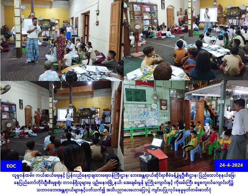 လူမှုဝန်ထမ်း၊ ကယ်ဆယ်ရေးနှင့် ပြန်လည်နေရာချထားရေးဝန်ကြီးဌာန၊ ဘေးအန္တရာယ်ဆိုင်ရာစီမံခန့်ခွဲမှု ဦးစီးဌာန၊ ပြည်ထောင်စုနယ်မြေ၊ နေပြည်တော်တိုင်းဦးစီးမှူးရုံးမှ တာဝန်ရှိသူများသည် (၂၄-၄-၂၀၂၄) ရက်နေ့၊ (၀၉:၃၀)နာရီအချိန်မှ (၁၀:၃၀)နာရီအချိန်ထိ ပျဉ်းမနားမြို့နယ်၊ အေးချမ်းမွန်မူကြိုကျောင်း၌ ကျောင်းသား/သူ (၃၀)ဦးတို့အားလည်းကောင်း၊ (၁၃:၃၀)နာရီအချိန်မှ (၁၅:၀၀)နာရီအချိန်ထိ၊ ကိုးခမ်းကြီး ဓမ္မစကူးလ်ကျောင်း၌ ကျောင်းသား/သူ(၆၀)ဦး စုစုပေါင်း ကျောင်းသား/သူ (၉၀)ဦးတို့အား သဘာဝဘေး အန္တရာယ်များနှင့်ပတ်သက်၍ အသိပညာပေးဟောပြောပွဲကို ကျင်းပပြုလုပ်ခဲ့ပြီး အဆိုပါဟောပြောပွဲတွင် သဘာဝဘေးအသိပညာပေး နံရံကပ်ပိုစတာများ ပေးအပ်ခြင်း၊ ဗီနိုင်းပိုစတာများ ပေးအပ်ခြင်း၊ ခဲတံနှင့် ဗလာစာအုပ်များ ဖြန့်ဝေပေးခြင်းများ ဆောင်ရွက်ခဲ့ပါကြောင်း သတင်းရရှိပါသည်။