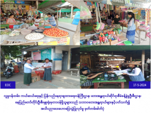 လူမှုဝန်ထမ်း၊ ကယ်ဆယ်ရေးနှင့် ပြန်လည်နေရာချထားရေးဝန်ကြီးဌာန၊ ဘေးအန္တရာယ်ဆိုင်ရာစီမံခန့်ခွဲမှု ဦးစီးဌာန၊ ပြည်ထောင်စုနယ်မြေ၊ နေပြည်တော်တိုင်းဦးစီးမှူးရုံးမှ တာဝန်ရှိသူများသည် (၁၇-၅-၂၀၂၄) ရက်နေ့တွင် ဒက္ခိဏသီရိမြို့နယ်အတွင်းရှိ ဒက္ခိဏစျေးနှင့် ရန်အောင်မြင်စျေးများသို့ မိုးကြိုကာလတွင် အများဆုံးဖြစ်ပွားလေ့ရှိသော လေပြင်းဘေးအန္တရာယ်၊ မိုးနှောင်းကာလတွင်ဖြစ်ပွားလေ့ရှိသော မိုးကြိုးဘေး အန္တရာယ်ဆိုင်ရာ ဆောင်ရန်/ ရှောင်ရန်အချက်များကို ပြည်သူများသိရှိစေရန်အတွက် အသိပညာပေး လက်ကမ်းစာစောင်များ သွားရောက်ဖြန့်ဝေခဲ့ပါကြောင်း သတင်းရရှိပါသည်။