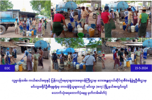 လူမှုဝန်ထမ်း၊ ကယ်ဆယ်ရေးနှင့် ပြန်လည်နေရာချထားရေးဝန်ကြီးဌာန၊ ဘေးအန္တရာယ်ဆိုင်ရာစီမံခန့်ခွဲမှု ဦးစီးဌာန၊ မင်းဘူးခရိုင်ဦးစီးမှူးရုံးမှ တာဝန်ရှိသူများသည် (၁၅-၅-၂၀၂၄) ရက်နေ့တွင် သောက်သုံးရေ လိုအပ်လျက်ရှိသည့် မင်းဘူး(စကု)မြို့နယ်၊ အမှတ် (၄) ရွှေဝါကုန်းရပ်ကွက်နှင့် မကျီးချောင်းကျေးရွာရှိ အိမ်ထောင်စု (၅၉၈) စုမှ လူဦးရေ (၂,၈၆၄) ဦးတို့အတွက် သောက်သုံးရေဂါလံ (၅,၆၀၀) အား သွားရောက်လှူဒါန်းခဲ့ပါကြောင်း သတင်းရရှိပါသည်။