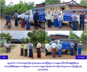 လူမှုဝန်ထမ်း၊ ကယ်ဆယ်ရေးနှင့် ပြန်လည်နေရာချထားရေးဝန်ကြီးဌာန၊ ဘေးအန္တရာယ်ဆိုင်ရာစီမံခန့်ခွဲမှု ဦးစီးဌာန၊ မင်းဘူးခရိုင်ဦးစီးမှူးရုံးမှ တာဝန်ရှိသူများသည် (၂၅-၅-၂၀၂၄) နေ့တွင် မင်းဘူးမြို့၊ အမှတ်(၃) ရပ်ကွက်နှင့် အမှတ် (၄) ရပ်ကွက်တို့၌လည်းကောင်း၊ (၂၆-၅-၂၀၂၄) နေ့တွင် မင်းဘူး(စကု)မြို့နယ်၊ နိဗ္ဗာန်ကျွန်းကျေးရွာ၊ ထုံးမကြီးကျေးရွာ၊ မန်းကျိုးကျေးရွာနှင့် ရွာသာကျေးရွာတို့၌လည်းကောင်း မုန်တိုင်းဘေးအန္တရာယ်သတိပေးခြင်းနှင့် မုန်တိုင်းဘေးအန္တရာယ်နှင့်စပ်လျဉ်း၍ ဆောင်ရန်/ ရှောင်ရန်အချက်များအား ရပ်ကွက်အုပ်ချုပ်ရေးမှူးများ၊ ရပ်မိရပ်ဖများ၊ မြန်မာနိုင်ငံမီးသတ်တပ်ဖွဲ့ဝင်များနှင့်ပူးပေါင်း၍ အသိပညာပေးခြင်း၊ လက်ကမ်းစာစောင်ဖြန့်ဝေခြင်းတို့ ဆောင်ရွက်ခဲ့ကြောင်း သတင်းရရှိပါသည်။
