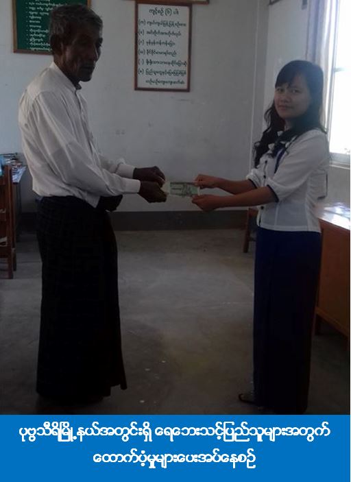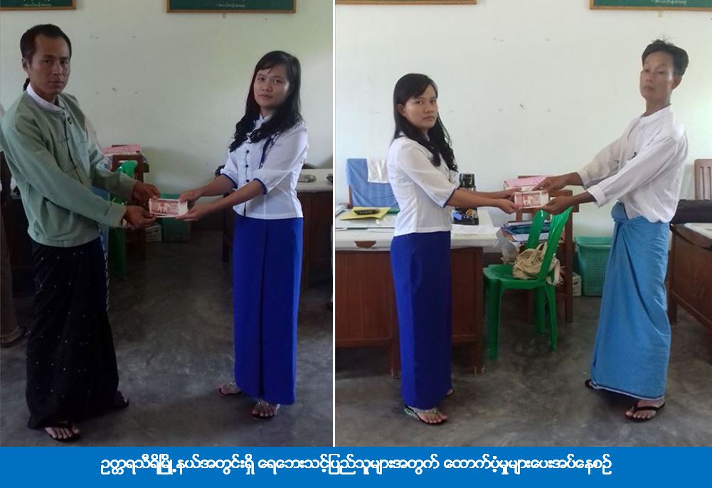 (၁၈-၁၁-၂၀၁၆) ရက်နေ့တွင် ပြည်ထောင်စုနယ်မြေ၊ နေပြည်တော်တိုင်းဦးစီးမှူးရုံး (ကဆရ) မှ တာဝန်ရှိသူများသည် လယ်ဝေးမြို့နယ်အတွင်းရှိ ရေဘေးသင့်အိမ်ထောင်စု (၁၆) စုမှ လူဦးရေ (၇၃) ဦးအတွက် အဝတ်ထုပ် (၃) ထုပ်၊ အိမ်ဆောက်ပစ္စည်းဖိုး (၄) သိန်းနှင့် ဆန်ဖိုးငွေ (၆၅၇၀၀) ကျပ်တိတိကို လည်းကောင်း၊ ပုဗ္ဗသီရိမြို့နယ်အတွင်းရှိ ကမ်းပြိုဘေးသင့်အိမ်ထောင်စု (၁၅) စုမှ လူဦးရေ (၆၀) ဦးအတွက် အဝတ်ထုပ် (၃) ထုပ်၊ အိမ်ဆောက်ပစ္စည်းဖိုးငွေ (၅၀၀၀၀) ကျပ်နှင့် ဆန်ဖိုးငွေ (၅၄၀၀၀) ကျပ်တိတိကိုလည်ကောင်း၊ ဥတ္တရသီရိမြို့နယ်များအတွင်း ရေဘေးသင့်အိမ်ထောင်စု (၂၉) စုမှ လူဦးရေ (၁၁၈) ဦးအတွက် အဝတ်ထုပ် (၅) ထုပ်၊ အိမ်ဆောက်ပစ္စည်းဖိုးငွေ (၁၂၅၀၀၀၀) ကျပ်နှင့် ဆန်ဖိုးငွေ (၁၀၆၂၀၀) ကျပ်တိတိတို့ကို ထောက်ပံ့ပေးအပ်ခဲ့ကြောင်း သိရှိရပါသည်။