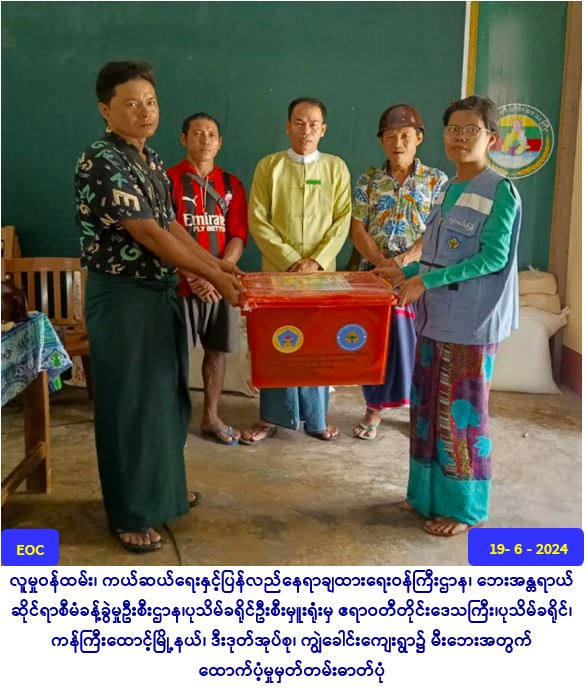 လူမှု၀န်ထမ်း၊ ကယ်ဆယ်ရေးနှင့် ပြန်လည်နေရာချထားရေး၀န်ကြီးဌာန၊ ဘေးအန္တရာယ်ဆိုင်ရာစီမံခန့်ခွဲမှုဦးစီးဌာန၊ ပုသိမ်ခရိုင် ဦးစီးမှူးရုံးမှ တာ၀န်ရှိသူများသည် ပုသိမ်ခရိုင်၊ ကန်ကြီးထောင့်မြို့နယ်၊ ဒီးဒုတ်အုပ်စု၊ ကျွဲခေါင်းကျေးရွာတွင် (၁၆-၆-၂၀၂၄)ရက်နေ့ (၁၉း၄၅)နာရီအချိန်၌ လျှပ်စီးမိုးကြိုးထိမှန်၍ မီးလောင်မှုဖြစ်ပွားခဲ့ခြင်းကြောင့် (သွပ်မိုး၊ ပျဥ်ကာ၊ ပျဥ်ခင်း) မီးလောင်ပျက်စီးနေအိမ် (၁)လုံးအတွက် အိမ်ဆောက်ပစ္စည်းဖိုးထောက်ပံ့ငွေကျပ် (၂၀၀,၀၀ဝိ/-)၊ (၁၈)နှစ်အထက် ကျား(၁)ဦး၊ မ(၁)ဦး၊ (၁၈)နှစ်အောက် ကျား(၁)ဦး၊ ဘေးသင့်လူဦးရေ စုစုပေါင်း (၃)ဦးအတွက် (၇)ရက်စာ ဆန်ရိက္ခာဖိုးထောက်ပံ့ငွေကျပ် (၆,၃၀ဝိ/-)၊ စုစုပေါင်းထောက်ပံ့ငွေကျပ် (၂၀၆,၃၀ဝိ/-)တိတိနှင့် ကယ်ဆယ်ရေးပစ္စည်း (၁၇)မျိုး စက္ကူပုံးပါ (၁)ပုံး၊ (၁၀၇,၆၇၈/-)ကျပ်တို့အား (၁၉-၆-၂၀၂၄)ရက်နေ့ (၁၃း၀၀)နာရီအချိန်တွင် ကန်ကြီးထောင့်မြို့နယ်စီမံအုပ်ချုပ်ရေးအဖွဲ့မှ တာ၀န်ရှိသူများနှင့်အတူ ဘေးသင့်ပြည်သူများ လက်၀ယ်သို့အရောက် ထောက်ပံ့ပေးအပ်ခဲ့ပါကြောင်း သတင်းရရှိပါသည်။
