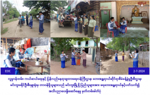 လူမှုဝန်ထမ်း၊ ကယ်ဆယ်ရေးနှင့် ပြန်လည်နေရာချထားရေးဝန်ကြီးဌာန၊ ဘေးအန္တရာယ်ဆိုင်ရာစီမံခန့်ခွဲမှုဦးစီးဌာန၊ မင်းဘူးခရိုင်ဦးစီးမှူးရုံးမှ တာဝန်ရှိသူများသည် (၂-၇-၂၀၂၄) ရက်နေ့တွင် မင်းဘူးမြို့၊ အမှတ် (၃) ရပ်ကွက်၊ အမှတ် (၄) ရပ်ကွက်၊ သစ်ချိုကုန်းရပ်ကွက်၊ သူဌေးကုန်းရပ်ကွက်တို့၌လည်းကောင်း၊ မင်းဘူး (စကု)မြို့နယ်၊ စကုမြို့၊ အမှတ်(၁) ရှမ်းစုရပ်ကွက်၊ မန်းကျင်းရပ်ကွက်၊ အမှတ် (၂) ရပ်ကွက်၊ အမှတ် (၃) ရပ်ကွက်၊ ဥယျာဉ်ဇင်ကျေးရွာ၊ သမထီးကျေးရွာ၊ စကုမြို့မဈေးနှင့် စကု၊ အ.ထ.က ကျောင်းရှေ့တို့၌ လည်းကောင်း ရေဘေးအန္တရာယ်သတိပေးခြင်းနှင့် ရေဘေးအန္တရာယ်နှင့်စပ်လျဉ်း၍ ဆောင်ရန်/ ရှောင်ရန်အချက်များအား ရပ်ကွက်အုပ်ချုပ်ရေးမှူးများ၊ ရပ်မိရပ်ဖများ၊ မီးသတ်တပ်ဖွဲ့ဝင်များနှင့်ပူးပေါင်း၍ ပြည်သူများသို့ အသိပညာပေးခြင်း၊ လက်ကမ်းစာစောင်ဖြန့်ဝေခြင်းလုပ်ငန်းများ ဆောင်ရွက်ခဲ့ပါကြောင်း သတင်းရရှိပါသည်။