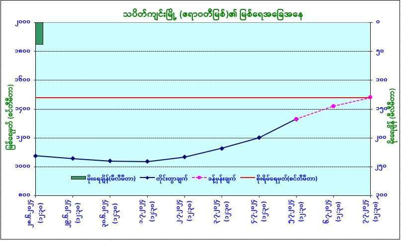 ယနေ့မြန်မာစံတော်ချိန် (၁၂:၃၀) နာရီအချိန် တိုင်းထွာချက်အရ ဧရာဝတီမြစ်ရေသည် သပိတ်ကျင်းမြို့တွင် ယင်းမြို့၏စိုးရိမ်ရေမှတ်အောက် ၅ ပေခန့် (၁၄၉ စင်တီမီတာ) တွင် ရောက်ရှိနေပါသည်။ အဆိုပါမြစ်ရေသည် နောက် ၂ ရက်အတွင်း ယင်းမြို့၏စိုးရိမ်ရေမှတ်သို့ ရောက်ရှိနိုင်ပါသည်။